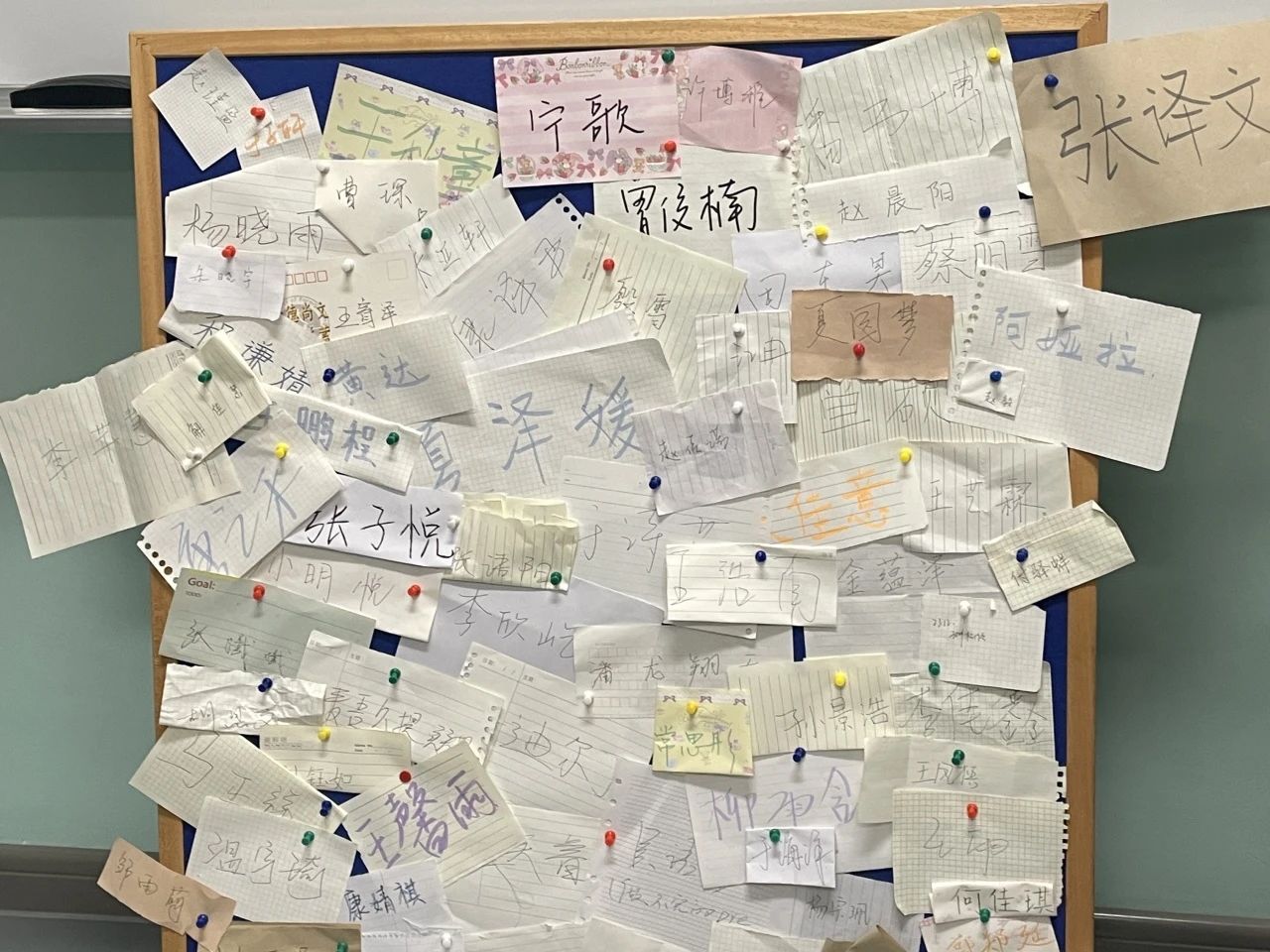 最后,同學(xué)們將自己的姓名卡片釘在毛氈板上并合影留念,工作人員分發(fā)小禮物送給所有的參與成員。