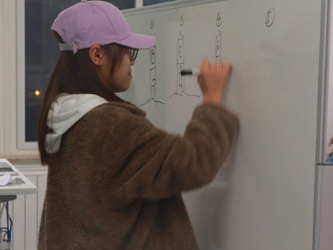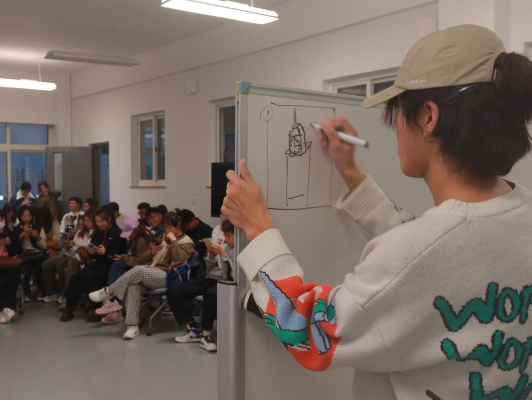 接力版你畫我猜更是讓現(xiàn)場(chǎng)歡笑不斷,每組派出??輪流到?板處畫畫,只有第??知道名稱,其余同學(xué)均靠猜來作畫。同學(xué)們或生動(dòng)或抽象的圖畫使得現(xiàn)場(chǎng)氣氛一度被點(diǎn)燃,掌聲連連。