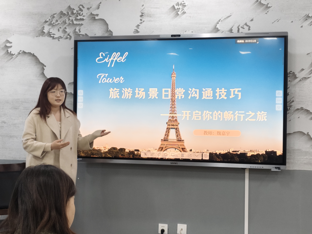 面試現(xiàn)場(chǎng),競(jìng)選者們精心準(zhǔn)備,憑借扎實(shí)的英語(yǔ)基礎(chǔ)和流暢的口語(yǔ)表達(dá),通過(guò)精彩的PPT展示,帶來(lái)了出色的課堂試講,充分展現(xiàn)出優(yōu)秀的專(zhuān)業(yè)能力。在問(wèn)答環(huán)節(jié),競(jìng)選者們結(jié)合自身所學(xué)與經(jīng)驗(yàn),深入闡述了對(duì)殘疾青年支教授課志愿服務(wù)的理解,堅(jiān)定表達(dá)了參與其中的決心。
