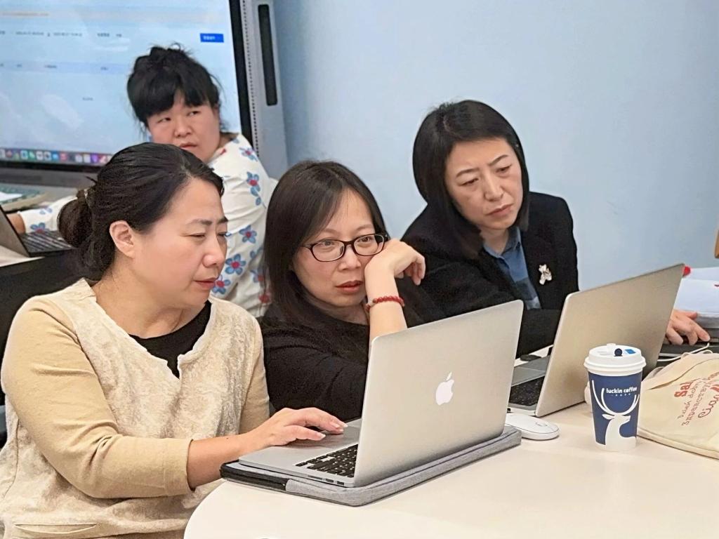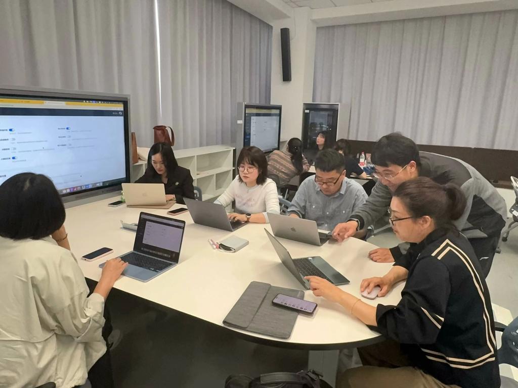 在實(shí)操環(huán)節(jié)中,教師們在技術(shù)人員的指導(dǎo)下,親自上手操作智慧教學(xué)平臺,嘗試運(yùn)用新工具設(shè)計(jì)互動課件、布置個性化作業(yè)并開展模擬課堂練習(xí)。大家積極交流操作心得,現(xiàn)場學(xué)習(xí)氛圍熱烈。
