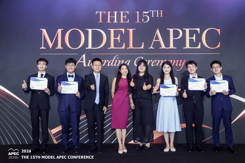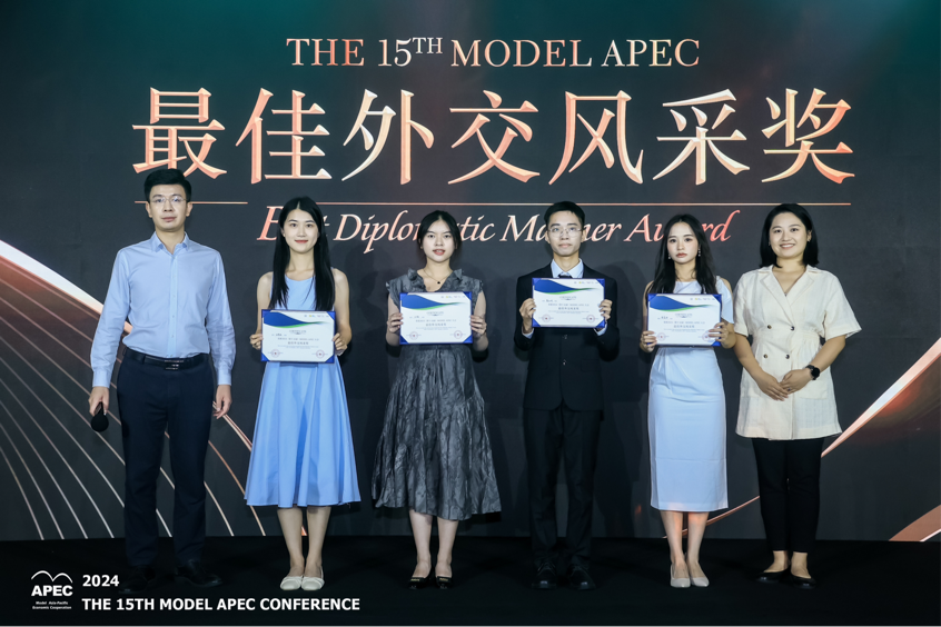 2024年8月16日至18日,第十五屆亞太青年模擬APEC大會(15th MODEL APEC)全國總決賽在北京舉行。本次大會吸引了來自全國四大賽區(qū)的百余所高校參賽,經(jīng)過層層選拔,最終由英語學(xué)院教師李雪梅和劉翔指導(dǎo)的董峻豪、張慧穎、尹赫威、彭力仁和王敖天等五名選手脫穎而出,參加了總決賽。在本次大會的平行會議中,參賽選手們表現(xiàn)出色,取得了令人矚目的成績。經(jīng)過激烈的地區(qū)賽和全國賽的競爭,董峻豪成功晉級全國三強,榮獲全國一等獎;張慧穎獲得最佳外交風(fēng)采獎;尹赫威獲得最佳外交口才獎;彭力仁和王敖天分別獲得全國大會優(yōu)秀獎。
