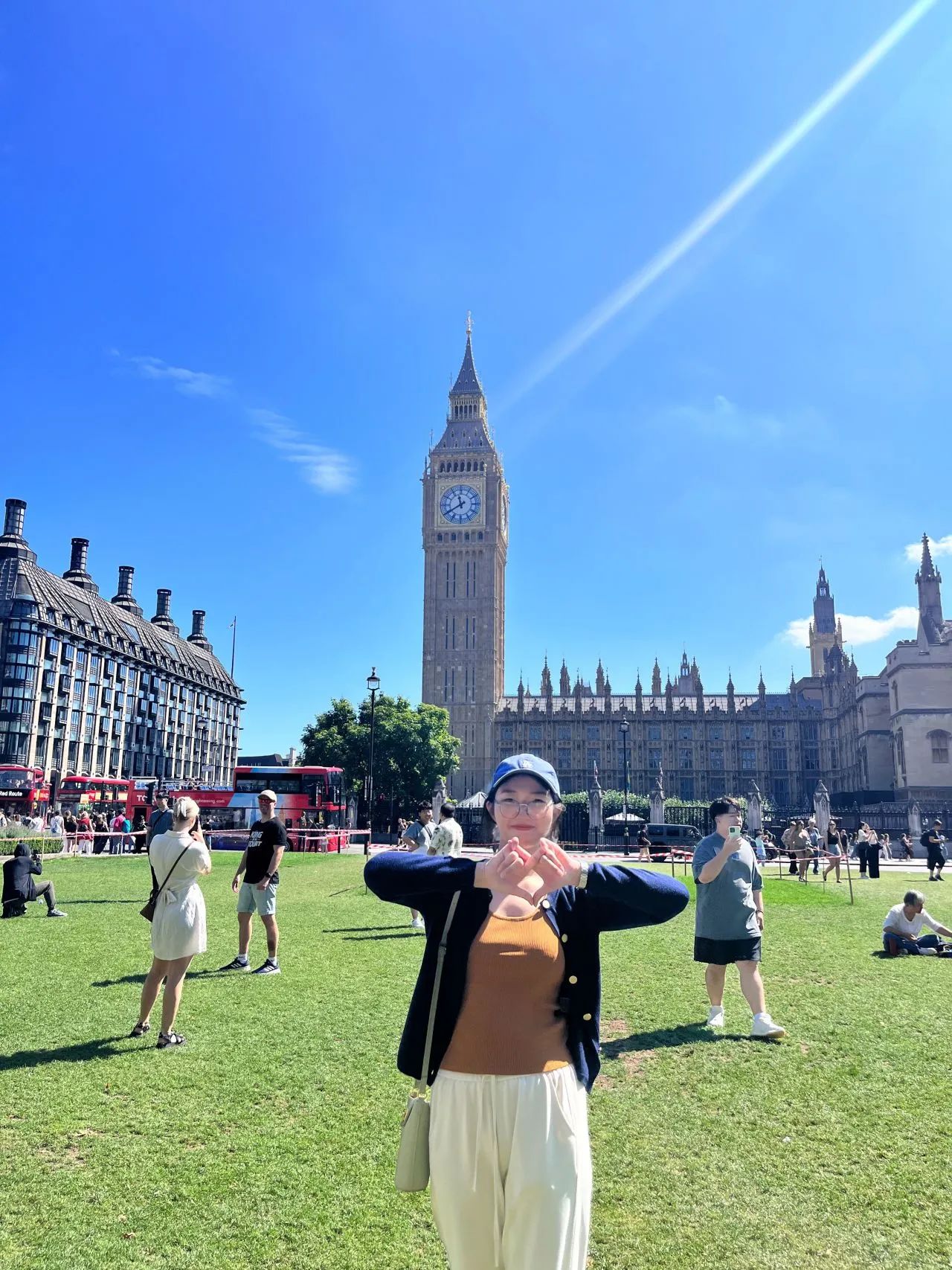 來到倫敦,我在白金漢宮看到了衛(wèi)兵換崗;漫步在威斯敏斯特大橋,聆聽大本鐘的鐘聲悠揚,在大英博物館里我看到匯聚了世界各地的珍寶和文物,閃耀著人類智慧和創(chuàng)造力的光芒。