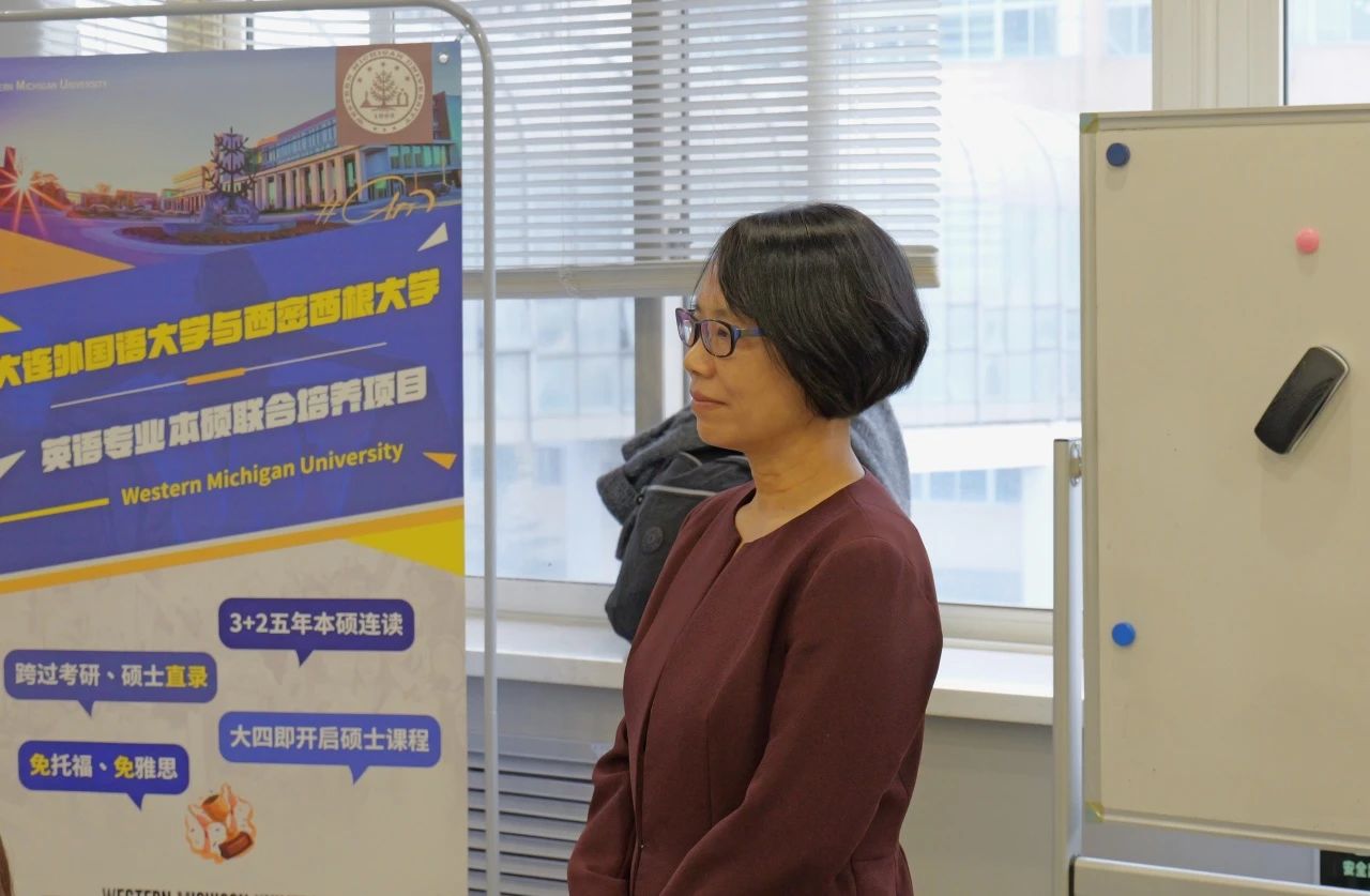 首先,杜老師詳細介紹了美國西密西根大學(xué)的概況,包括地理位置、學(xué)校排名、學(xué)校榮譽、科研狀況、實習(xí)機會以及其所在的密歇根州等相關(guān)信息。接著杜老師介紹了大連外國語大學(xué)與美國西密西根大學(xué)的聯(lián)合培養(yǎng)項目,并對美國西密西根大學(xué)的入學(xué)要求、獎學(xué)金情況、培養(yǎng)項目的申請要求和相關(guān)流程進行了詳細說明。隨后,曾主任與同學(xué)們進行了互動交流,對大家關(guān)心的問題進行了耐心解答,并進一步向同學(xué)們介紹了美國西密西根大學(xué)的師資隊伍、專業(yè)設(shè)置、科研成就、院校合作、實習(xí)實踐等情況,展示了西密西根大學(xué)濃厚的學(xué)習(xí)氛圍、豐富的校園活動、優(yōu)美的周邊環(huán)境、強大的科研實力和寶貴的公司實習(xí)機會。最后,曾校長鼓勵有留學(xué)想法的同學(xué)盡早作好準(zhǔn)備,清晰自己的未來規(guī)劃,把握自我提升的機會,提升就業(yè)競爭力。