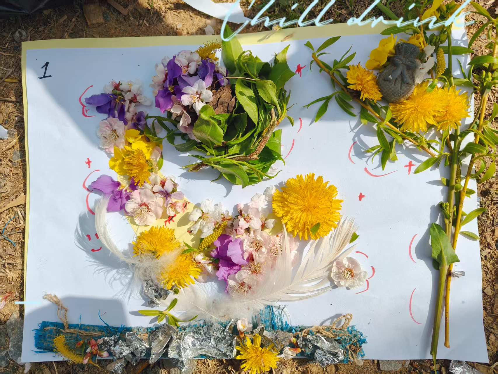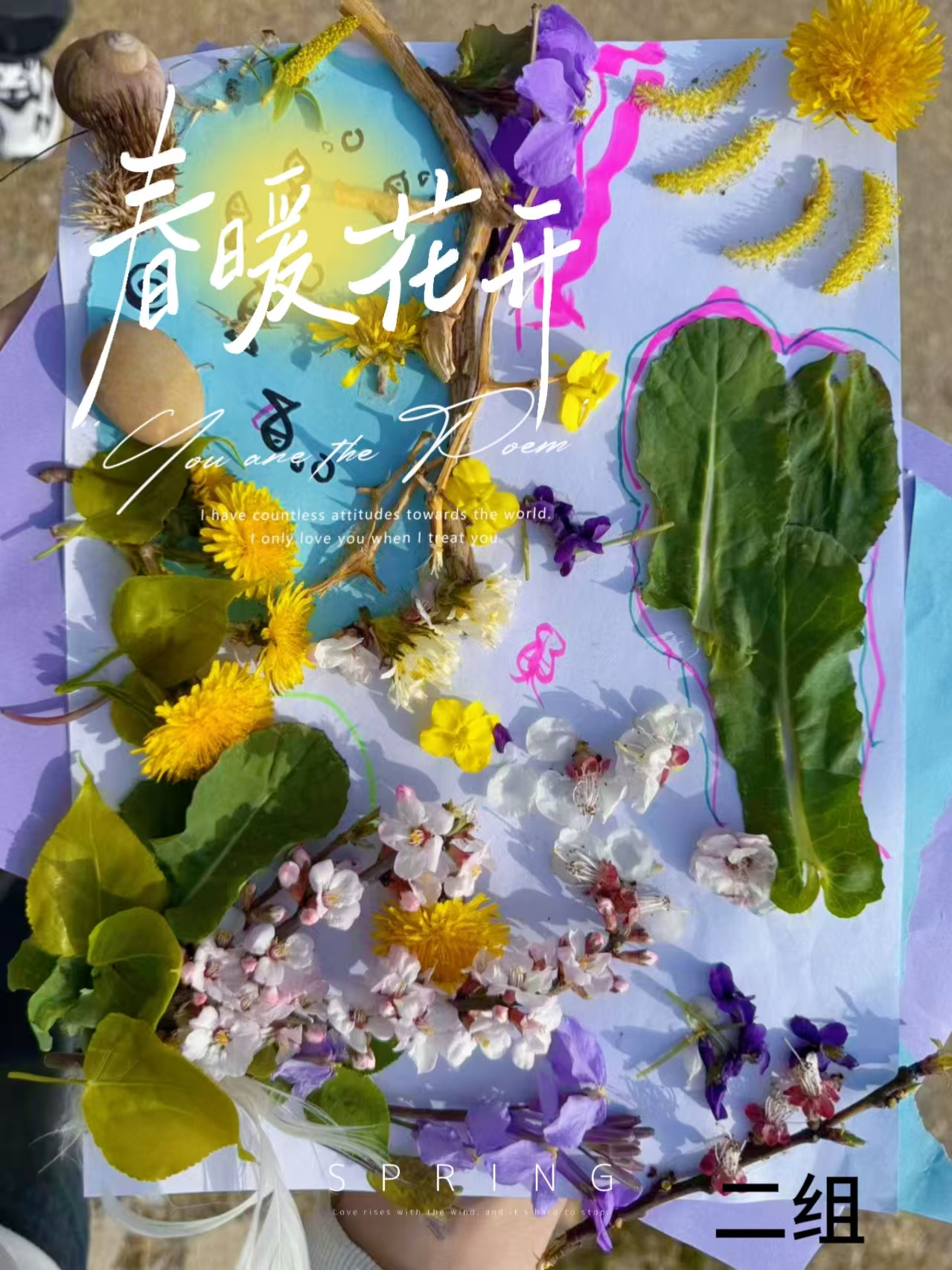 清掃結(jié)束后,同學(xué)們以沿途采集的落葉、零落花瓣、凋萎草莖等自然掉落的植物材料,通過裁剪、疊壓、拼貼等方式轉(zhuǎn)化為創(chuàng)意作品。一幅幅充滿創(chuàng)意的植物拼貼畫不僅展現(xiàn)了植物材料的全新藝術(shù)可能,還蘊(yùn)含著創(chuàng)作者對自然的獨(dú)特理解與熱愛。