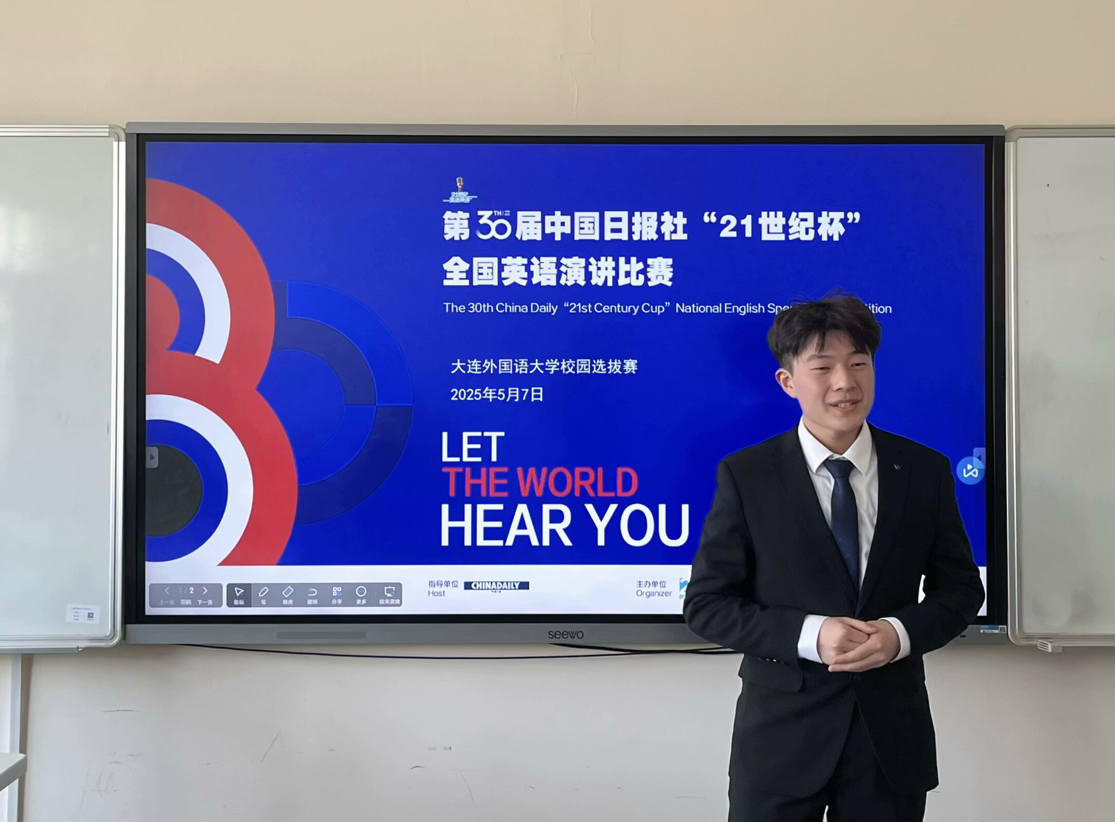 為提升我校學(xué)生語言綜合運用能力,培養(yǎng)高素質(zhì)復(fù)合型英語人才,5月7日,英語學(xué)院于勵業(yè)樓舉辦第30屆中國日報社“21 世紀杯”全國英語演講比賽大連外國語大學(xué)校園選拔賽。本次復(fù)賽由英語學(xué)院教師石文瑞主持,公共外語部教師韓丹、英語學(xué)院教師黃滔、高級翻譯學(xué)院教師陳婧、商學(xué)院教師李群、軟件學(xué)院教師邵林擔任評委。