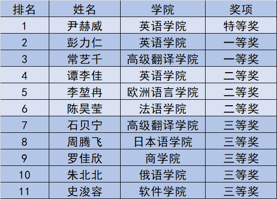 經(jīng)過激烈角逐,英語學(xué)院尹赫威獲得特等獎直通國賽,英語學(xué)院彭力仁、高級翻譯學(xué)院常藝千兩位選手獲一等獎,三位同學(xué)將代表大連外國語大學(xué)參加遼寧省決賽。最后,大賽評委為選手們頒獎并送上由衷的祝賀,并勉勵未晉級選手持續(xù)精進技藝、夯實專業(yè)基礎(chǔ),以精益求精的態(tài)度砥礪前行、再創(chuàng)佳績。
