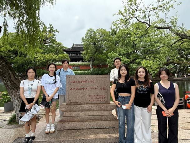 7月26日,英語(yǔ)學(xué)院“紅船鑄夢(mèng)·赤子勵(lì)行”社會(huì)實(shí)踐團(tuán)奔赴浙江嘉興,從“南湖·1921紅色專列”到南湖紅船畔,從革命紀(jì)念館到煙雨樓前,循著先輩足跡解碼“紅船精神”,以青春實(shí)踐詮釋青年使命。