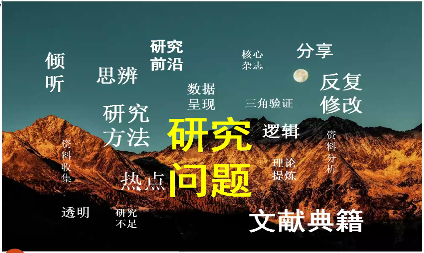 本次講座圍繞選題步驟、選題原則、選題過程以及如何撰寫選題任務(wù)書等方面進(jìn)行了探討。鄭教授首先闡述了研究的概念,認(rèn)為研究應(yīng)由研究問題、數(shù)據(jù)和詮釋三部分組成。隨后,鄭教授結(jié)合研究線路圖對(duì)研究的步驟進(jìn)行了詳細(xì)地講解,具體包括文獻(xiàn)回顧、研究設(shè)計(jì)、資料收集、數(shù)據(jù)分析、探討闡釋等方面。鄭教授尤其強(qiáng)調(diào)文獻(xiàn)綜述的重要性,認(rèn)為基于數(shù)據(jù)庫資源的文獻(xiàn)查找、理論發(fā)展軌跡的梳理以及對(duì)比相關(guān)研究的過程有助于重新認(rèn)識(shí)研究問題,從而實(shí)現(xiàn)價(jià)值添加的目的。最后,鄭教授建議不要盲目照搬理論框架,而應(yīng)該根據(jù)研究問題的屬性和潛在因素進(jìn)行預(yù)判,做出適當(dāng)?shù)恼{(diào)整和補(bǔ)充,嘗試性地搭建自己的概念框架。
