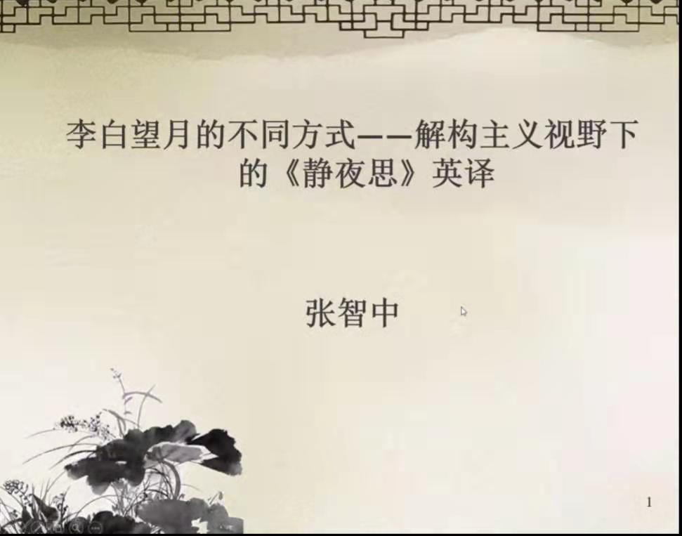 5月26日,南開大學(xué)外國語學(xué)院張智中教授應(yīng)我校科研處與英語學(xué)院邀請,通過騰訊會議平臺為我院做了題為“李白望月的不同方式——解構(gòu)主義視野下的《靜夜思》英譯”的學(xué)術(shù)講座。本次講座為我院翻譯系列講座之一,由霍躍紅教授主持,我院碩士研究生和翻譯方向本科生共同聆聽了此次講座。