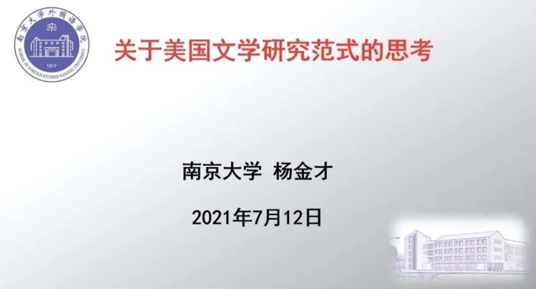 7月12日,應(yīng)我校科研處與英語學(xué)院邀請(qǐng),《當(dāng)代外國文學(xué)》主編、南京大學(xué)外國語學(xué)院楊金才教授在11A109為我院師生做題為“關(guān)于美國文學(xué)研究范式的思考”的學(xué)術(shù)講座。本次講座采用線上線下結(jié)合模式,由英語學(xué)院院長呂春媚教授主持,我院文學(xué)方向教師和研究生共享了此次學(xué)術(shù)盛宴。