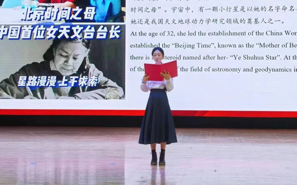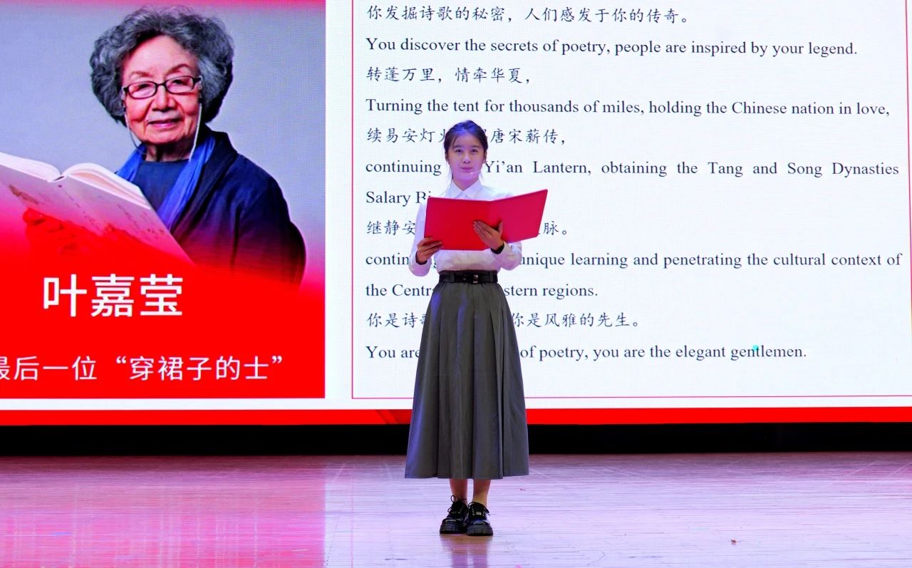 中場表演環(huán)節(jié)中,由蔣美軒、李昕睿、張依然、汪思齊、許博雅五位同學(xué)帶來的朗誦《中華兒女多奇志,巾幗風(fēng)華滿庭芳》講述了韋慧曉、鄧迎香、葉嘉瑩、張桂梅、葉叔華五個人物的感人事跡,向在各個領(lǐng)域為祖國無私奉獻(xiàn)的中華巾幗致以最崇高的敬意。