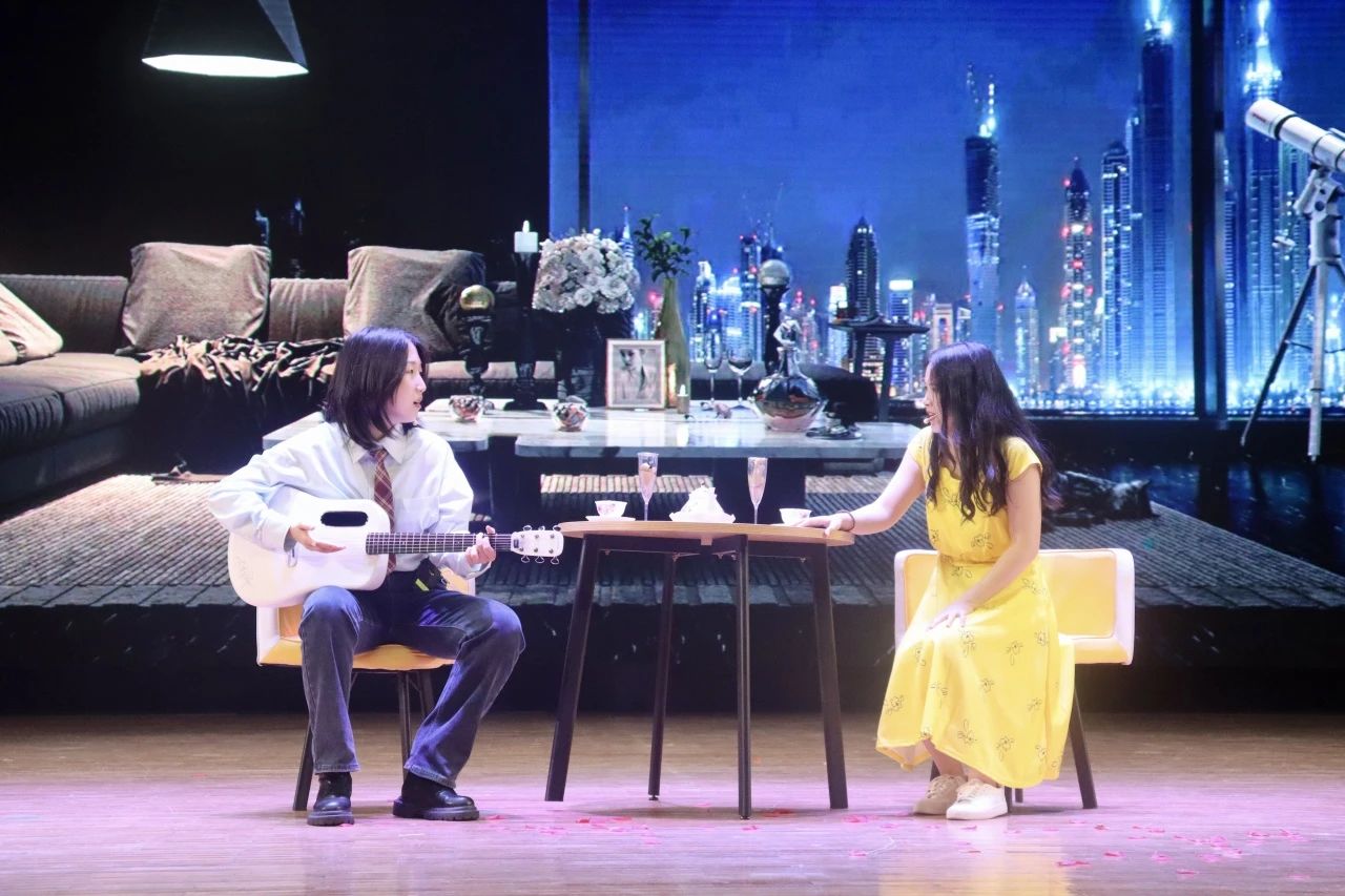 中場環(huán)節(jié)過后,研究生劇組表演了深受觀眾喜愛的劇目《愛樂之城》,描繪了爵士鋼琴家賽巴斯蒂安和女演員米婭在洛杉磯這個充滿夢想與機(jī)會的城市相識,在種種挑戰(zhàn)和抉擇面前鼓勵彼此勇敢追求自己夢想的故事。他們輕松愜意的表演風(fēng)格和歡快自在的舞臺呈現(xiàn)為本場演出增添了無限魅力。
