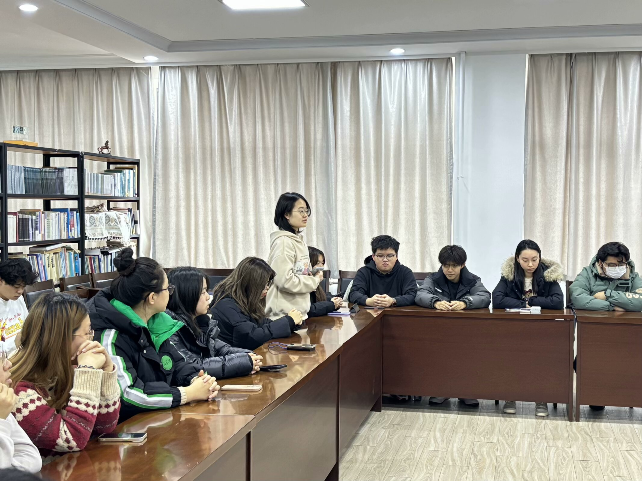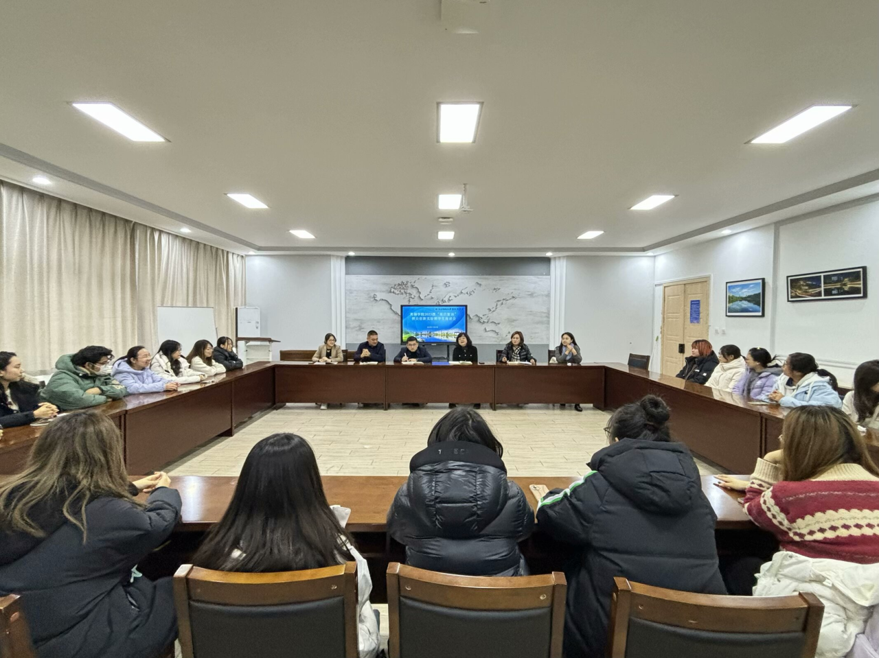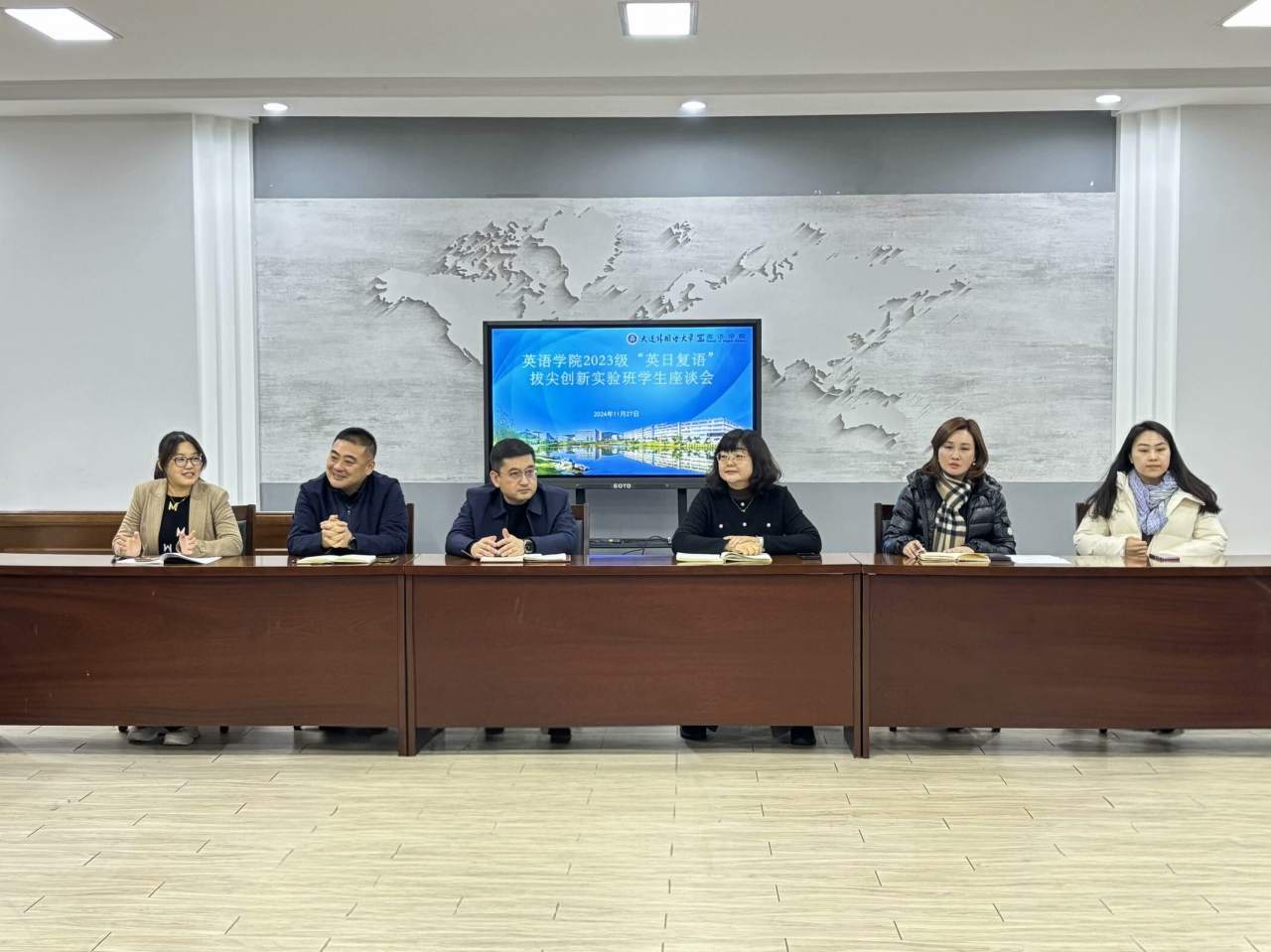 為進一步增強語言學(xué)科專業(yè)建設(shè),培養(yǎng)更多復(fù)合型國際化外語人才,11月27日,英語學(xué)院于勵業(yè)樓愛爾蘭研究中心召開2023級“英日復(fù)語”拔尖創(chuàng)新實驗班學(xué)生座談會。本次會議由英語學(xué)院2023級輔導(dǎo)員吳曼主持,英語學(xué)院黨委書記梁若冰、院長呂春媚、黨委副書記兼紀(jì)委書記孫碩、副院長羅俏鵑、教學(xué)秘書趙謙及25位實驗班同學(xué)出席本次會議。