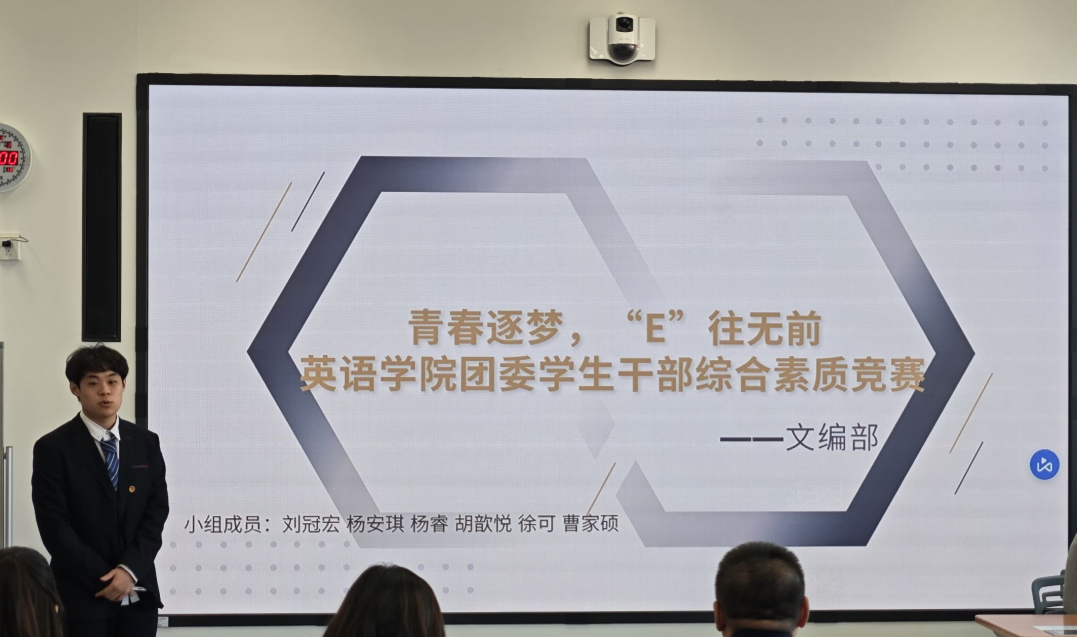 為了提高英語學院團干部的綜合能力,展示我院學生干部的風采,英語學院團委舉辦了2024年團干部綜合能力大賽。本次比賽從11月27日開始,分為初賽、復賽和決賽三個階段進行。初賽階段采取以小組為單位的競賽形式在各部門內部獨立開展,各小組分工明確,進行工作案例分析和工作經(jīng)驗分享,由英語學院第54屆團委學生組織主席團及部長級擔任評委團成員推優(yōu)至線上復賽;復賽階段由2023級輔導員吳曼、第50屆新媒體中心主任馬睿、第51屆新媒體中心主任孔柏惠、第52屆學生會執(zhí)行主席陳琳、第53屆學生會執(zhí)行主席高維澤擔任評委進行綜合考量與多維度評審,最終選出6支參賽隊伍進入決賽。
