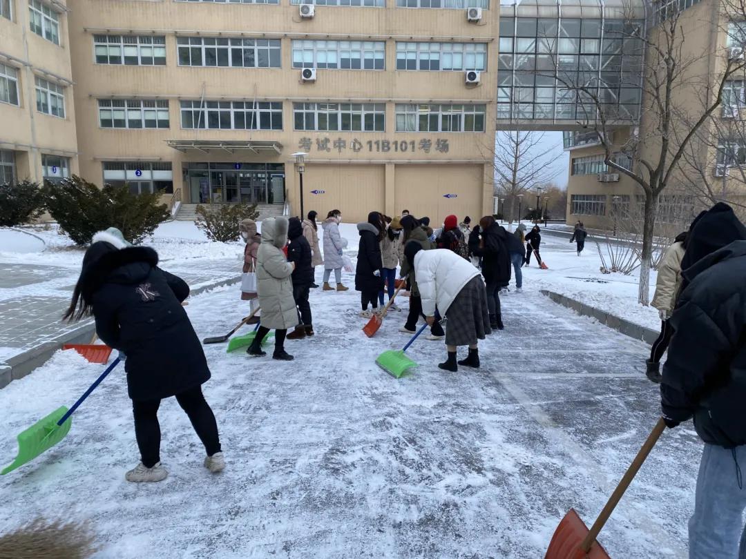 大雪如期而至,校園里一片銀裝素裹。為解決厚重的積雪為我校師生日常出行和通勤帶來(lái)的極大不便,12月30日下午,英語(yǔ)學(xué)院本科生黨支部書記曲鏡達(dá)老師、教工黨員達(dá)尼亞爾江?亞力坤江老師和李延奇老師與英語(yǔ)學(xué)院本科生黨支部全體學(xué)生黨員一起開(kāi)展除雪活動(dòng)。