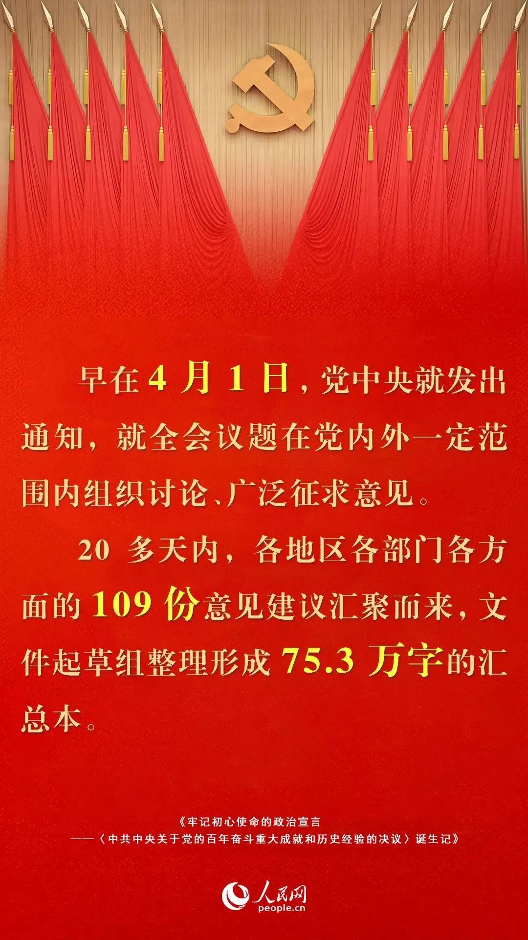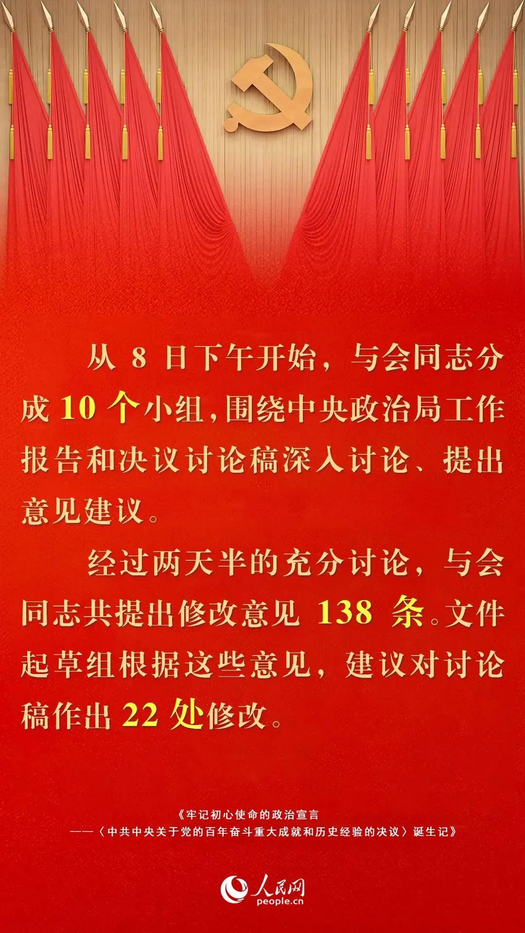 2021年11月8日至11日,一次承前啟后、繼往開(kāi)來(lái)的重要會(huì)議,通過(guò)了一份光輝的馬克思主義綱領(lǐng)性文獻(xiàn)。人民日?qǐng)?bào)頭版今天刊發(fā)文章《牢記初心使命的政治宣言——〈中共中央關(guān)于黨的百年奮斗重大成就和歷史經(jīng)驗(yàn)的決議〉誕生記》。我們從中找出了十組數(shù)字,從這個(gè)角度來(lái)和大家學(xué)習(xí)《決議》的誕生過(guò)程。