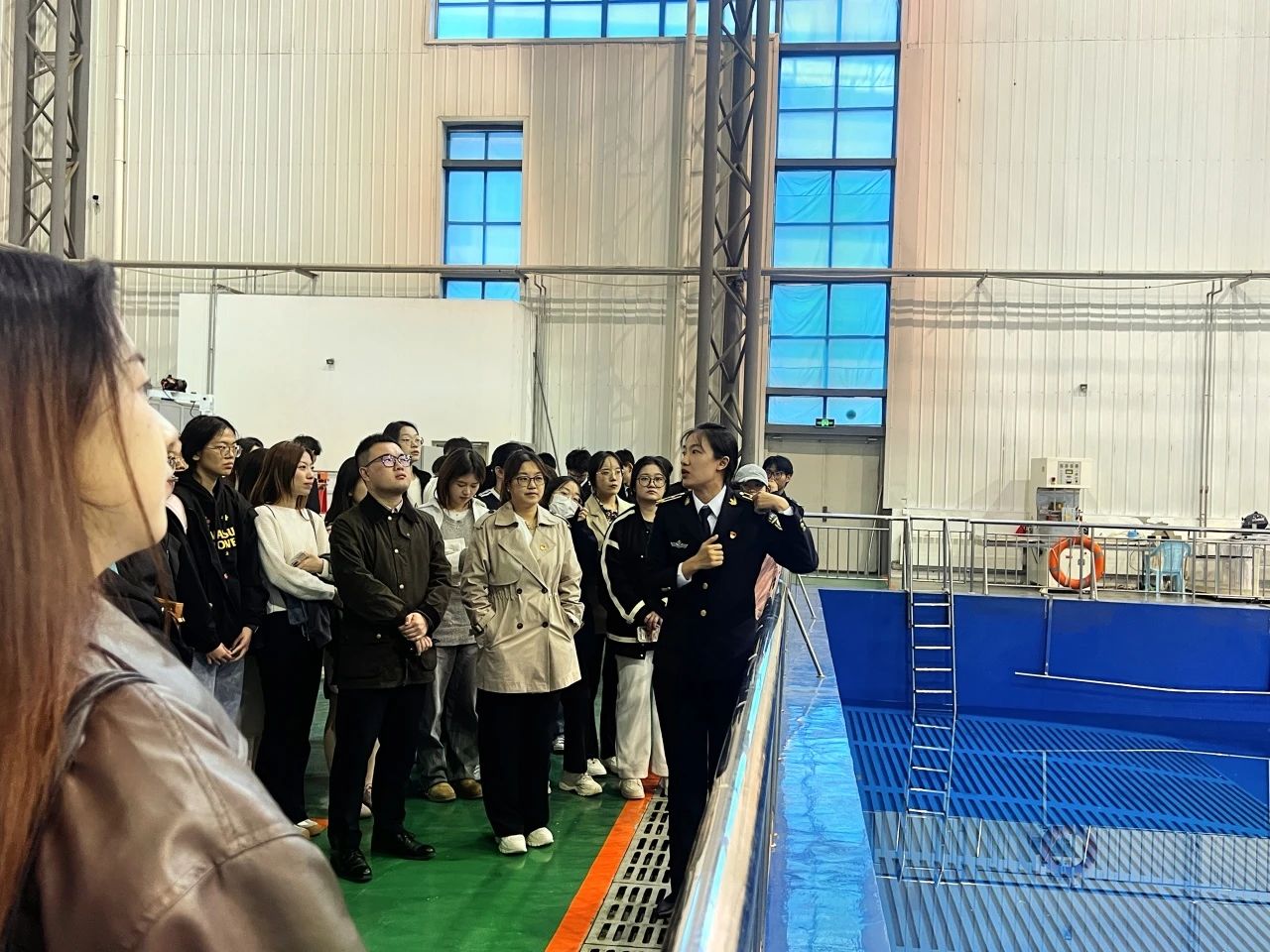 英語學(xué)院本科生第一黨支部一行還參觀了大連海事大學(xué)圖書館,并在半軍管文化長廊觀看了學(xué)校宣傳片,深入了解大連海事大學(xué)的建校歷史。在救撈實驗室,船舶與海洋工程學(xué)院研究生學(xué)生黨支部書記王宏詩為黨支部成員講解相關(guān)知識,并展示了實驗室的運轉(zhuǎn)過程。