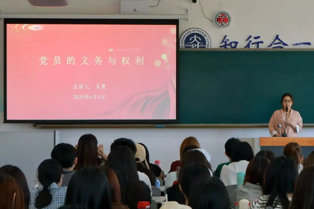 在第五講的課堂上,英語學(xué)院2023級(jí)輔導(dǎo)員吳曼為入黨積極分子帶來《共產(chǎn)黨員的義務(wù)與權(quán)利》專題課程。吳曼老師從黨章的歷史沿革講起,細(xì)致梳理共產(chǎn)黨員義務(wù)與權(quán)利的具體條目并深入闡釋其所代表的重要意義。同時(shí),吳曼老師強(qiáng)調(diào),黨員義務(wù)與權(quán)利相輔相成、不可割裂,入黨積極分子們應(yīng)提升理論修養(yǎng)、夯實(shí)知識(shí)根基,自覺踐行黨的根本宗旨,在學(xué)習(xí)生活里勇當(dāng)先鋒,以實(shí)際行動(dòng)向黨組織靠攏。