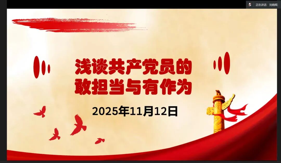 在第七講的課堂中,英語學(xué)院副院長劉曉暉為入黨積極分子們帶來了以《淺談共產(chǎn)黨員的敢擔(dān)當(dāng)與有作為》為主題的黨課。劉院長結(jié)合黨的二十大精神,深入闡釋了擔(dān)當(dāng)作為責(zé)任、能力與作風(fēng)的三重核心內(nèi)涵,并結(jié)合外語學(xué)科特色,勉勵(lì)同學(xué)們發(fā)揮專業(yè)優(yōu)勢,在跨文化交流中講好中國故事、傳播中國聲音。會議同時(shí)提出加強(qiáng)學(xué)習(xí)、率先垂范、立足實(shí)踐等多項(xiàng)行動指引。劉院長強(qiáng)調(diào)全體入黨積極分子要認(rèn)真領(lǐng)會,將擔(dān)當(dāng)精神內(nèi)化于心、外化于行,在實(shí)踐中錘煉黨性,發(fā)揮模范作用。