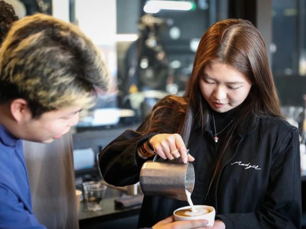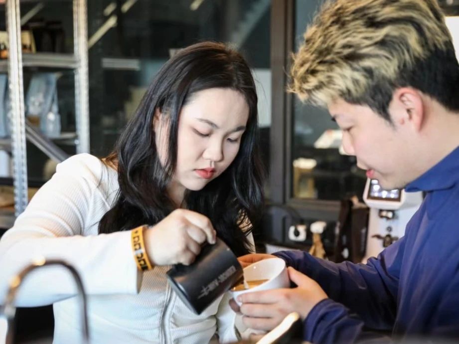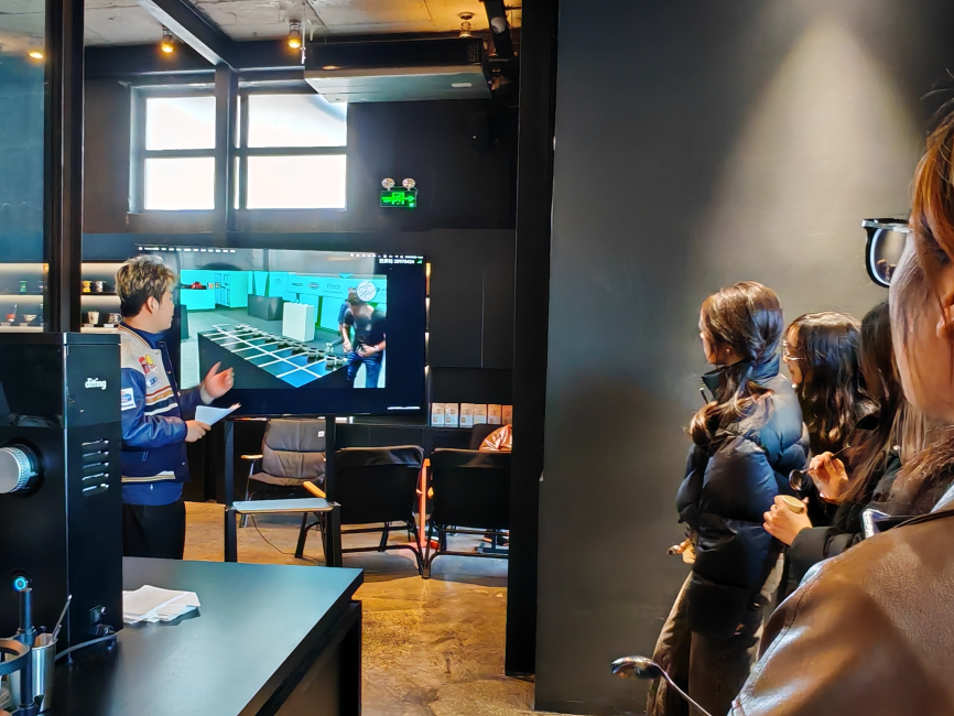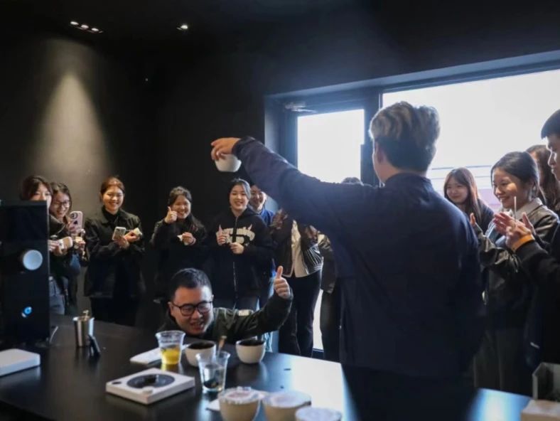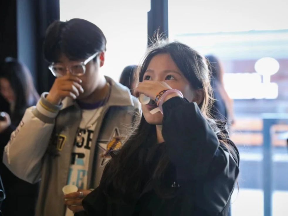 在三角杯測賽中,同學(xué)們需要通過品嘗找出三杯咖啡中不同的一杯,在細(xì)嗅咖啡濃厚淳樸香味的同時,體驗(yàn)不同口感對味蕾的淬煉。三輪比賽中,每輪的晉級者還收獲了咖啡師贈予的紀(jì)念禮品。