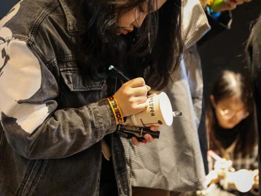 比賽之余,同學(xué)們在咖啡師的悉心指導(dǎo)下學(xué)習(xí)了咖啡的拉花技巧。同時,大家還發(fā)揮創(chuàng)意,進(jìn)行了命題創(chuàng)作,將紙杯繪制成精美的藝術(shù)品。活動即將結(jié)束時,大家合影留念,定格了這難忘的時刻。