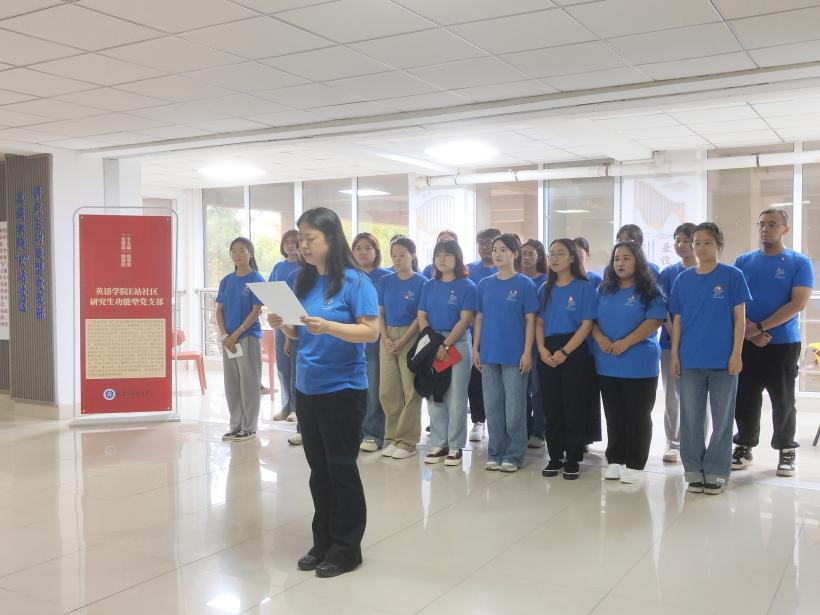 為喜迎祖國74周年華誕,深入學(xué)習(xí)貫徹習(xí)近平新時(shí)代中國特色社會(huì)主義思想和黨的二十大精神,進(jìn)一步增強(qiáng)英語學(xué)院“E”站社區(qū)研究生功能型黨支部的凝聚力、號(hào)召力和戰(zhàn)斗力,在校黨委組織部、校黨委學(xué)生工作部的大力支持和指導(dǎo)下,9月27日下午于5E宿舍樓二樓中廳召開英語學(xué)院“E”站社區(qū)研究生功能型黨支部服務(wù)啟動(dòng)儀式。英語學(xué)院黨委梁若冰副書記,英語學(xué)院黨委副書記、院長呂春媚,黨委副書記兼紀(jì)委書記孫碩,英語學(xué)院教工第二黨支部書記、副院長曲濤,英語學(xué)院副院長劉曉輝,英語學(xué)院教工第一黨支部書記、英語學(xué)院副院長王成東,研究生黨支部書記黃新智,本科生第一黨支部書記曲鏡達(dá),本科生第二黨支部書記王藝凝、輔導(dǎo)員吳曼、達(dá)尼亞爾江·亞力坤江、李延奇老師以及英語學(xué)院“E”站社區(qū)研究生功能型黨支部和研究生黨支部成員共同參加本次儀式,儀式由英語學(xué)院研究生功能型黨支部書記韓秀同志主持。