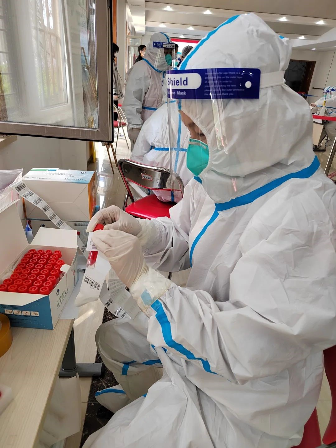 作為我院教工第二黨支部的一名黨員教師,于紅霞老師在收到學(xué)院黨委號召部署后,立刻投身社區(qū)抗疫工作。在向大連市甘井子區(qū)凌水街道廟嶺社區(qū)報到之后,于老師于4月17日以志愿者身份參加了廟嶺社區(qū)的核酸檢測服務(wù)工作。工作過程中,她耐心細致、熱情洋溢,將輔助掃描登記、粘貼試管條碼、維護檢測秩序、協(xié)助物資配送等多項工作處理的井井有條,以實際行動踐行了一名黨員教師的初心使命。