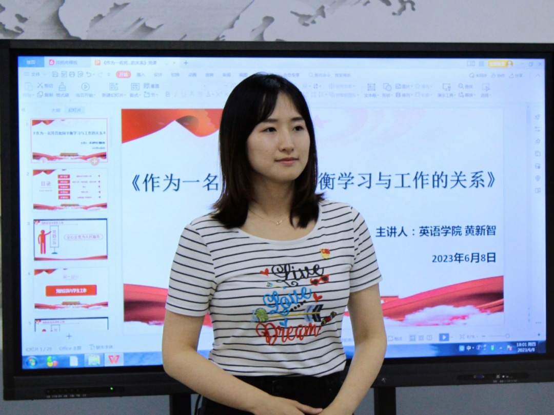 在第四講的課堂上,英語學院研究生黨支部書記黃新智老師為同學們帶來了“作為一名黨員如何平衡學習與工作的關(guān)系”專題課程。