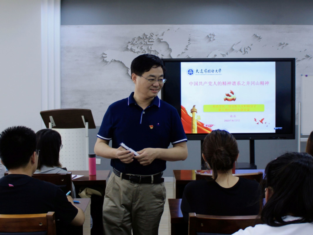 在第三講的課堂上,英語學院教工第二黨支部書記、副院長曲濤為同學們帶來了“中國共產(chǎn)黨人的精神譜系之井岡山精神”專題課程。