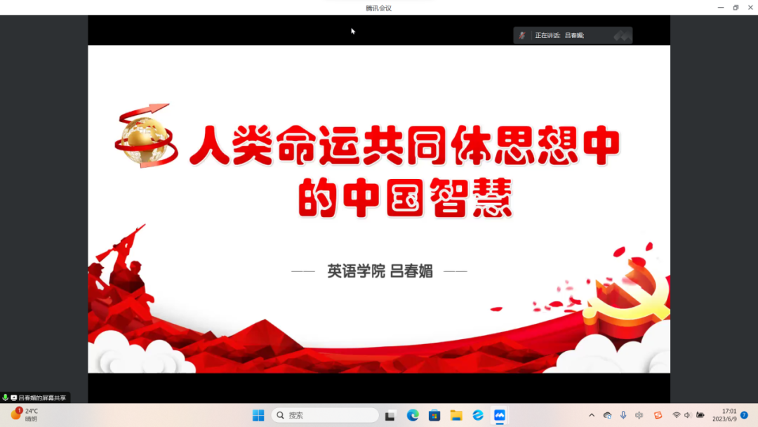 在第五講的課堂上,英語學院院長呂春媚為同學們帶來了“人類命運共同體思想中的中國智慧”專題課程。