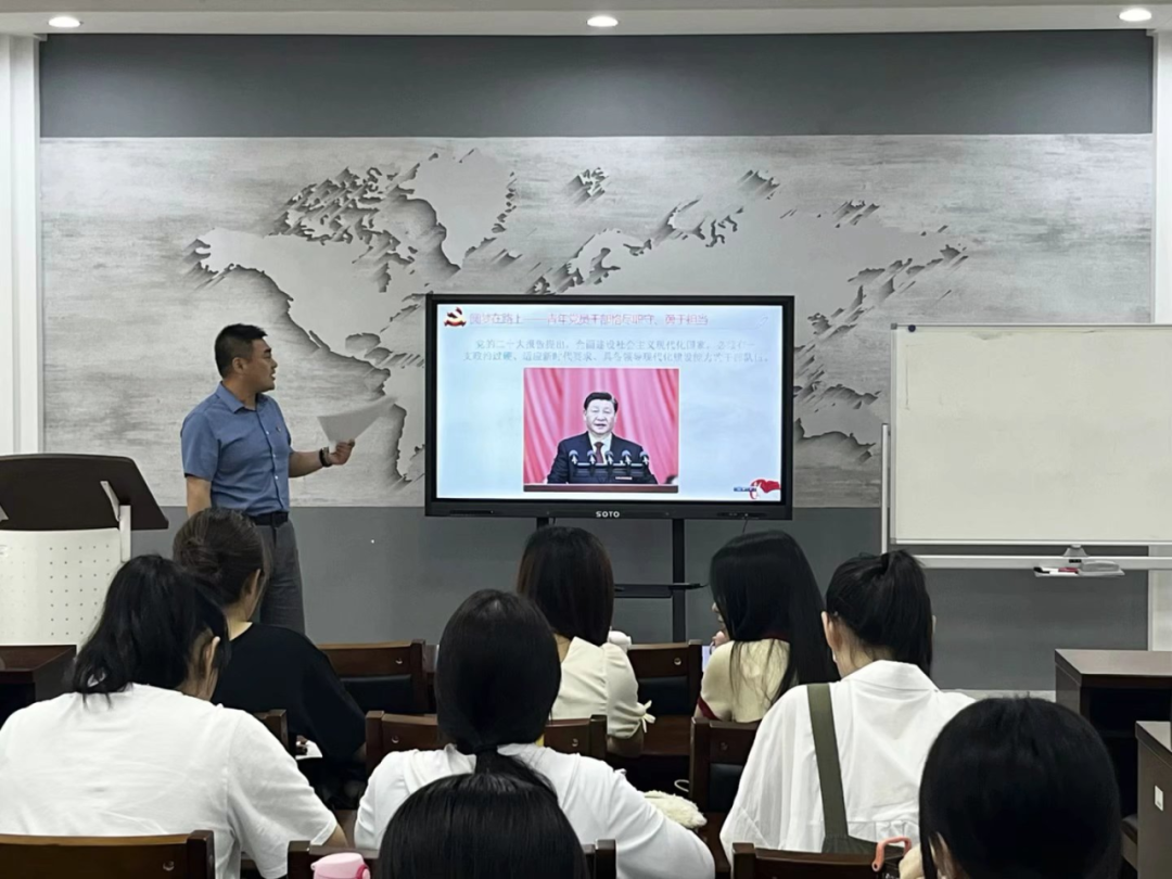 曲濤副院長首先帶領(lǐng)大家回顧了二十大報告主題,并從新民主主義革命時期、社會主義革命與建設(shè)時期、改革開放和社會主義現(xiàn)代化建設(shè)新時期以及中國特色社會主義新時代四個歷史時期入手,講述了中國共產(chǎn)黨人精神譜系的發(fā)展歷程,并向大家明確了偉大建黨精神是精神之源。接著,曲濤副院長選取井岡山精神作為主要講解內(nèi)容,從井岡山精神產(chǎn)生的背景、什么是井岡山精神、井岡山精神的科學內(nèi)涵以及井岡山精神的現(xiàn)實意義四個部分進行介紹。最后,曲濤副院長號召大家大力發(fā)揚井岡山精神,以開拓者的姿態(tài)拼搏進取,實現(xiàn)超越,達成新的目標。