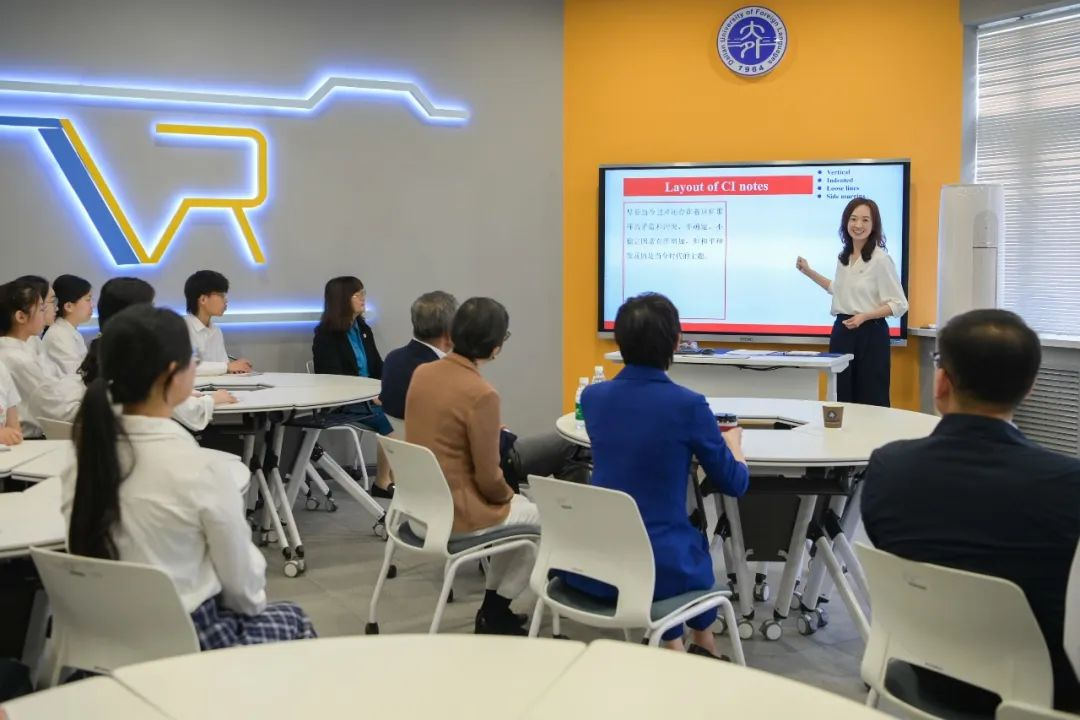 在VR英語(yǔ)實(shí)訓(xùn)中心,大使學(xué)長(zhǎng)進(jìn)入李錫純老師的《口譯工作坊》課堂,對(duì)英語(yǔ)專(zhuān)業(yè)人才培養(yǎng)、教育模式、教學(xué)理念、教學(xué)條件等給予了高度評(píng)價(jià);同時(shí),他還結(jié)合自己的學(xué)習(xí)和外交工作經(jīng)歷,鼓勵(lì)同學(xué)們要夯實(shí)語(yǔ)言基本功,更多地了解博大精深的中國(guó)文化,傳播好中國(guó)聲音,講好中國(guó)故事,不斷推動(dòng)中華文化更好地走向世界。