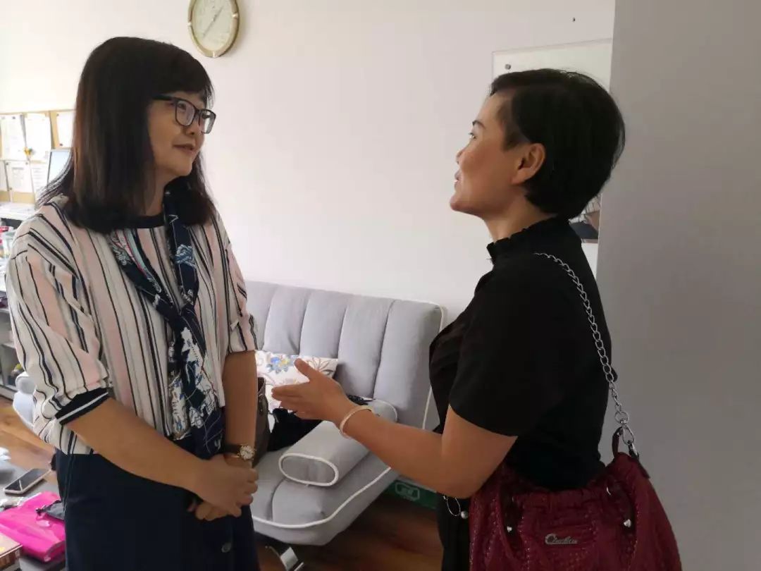 論壇結(jié)束后李健先生和林美玲女士在輔導(dǎo)員吳曼老師和志愿者的陪同下,參觀了英語(yǔ)學(xué)院的辦公區(qū)域及同學(xué)們的自習(xí)室,重溫當(dāng)年美好的大學(xué)時(shí)光。兩位還與英語(yǔ)學(xué)院呂春媚院長(zhǎng)和夏洋副院長(zhǎng)進(jìn)行了友好交談。交談的內(nèi)容主要關(guān)于英語(yǔ)學(xué)院近些年來(lái)的發(fā)展、教學(xué)研究方面取得的成果以及英語(yǔ)學(xué)院學(xué)生的畢業(yè)走向和就業(yè)問(wèn)題。兩位校友均表達(dá)了對(duì)學(xué)校能夠加強(qiáng)與企業(yè)間合作的憧憬,期待校企合作能為在校學(xué)生提供更多更優(yōu)質(zhì)的實(shí)習(xí)平臺(tái)和機(jī)會(huì),提高學(xué)生的整體素質(zhì)。同時(shí)李健先生也對(duì)英語(yǔ)專業(yè)學(xué)生提出了幾點(diǎn)期盼,希望同學(xué)們能夠多涉獵其他領(lǐng)域的知識(shí),讓大學(xué)成為人生的起點(diǎn),堅(jiān)持終身學(xué)習(xí),努力讓自己成為多樣化、全面發(fā)展的復(fù)合型人才。