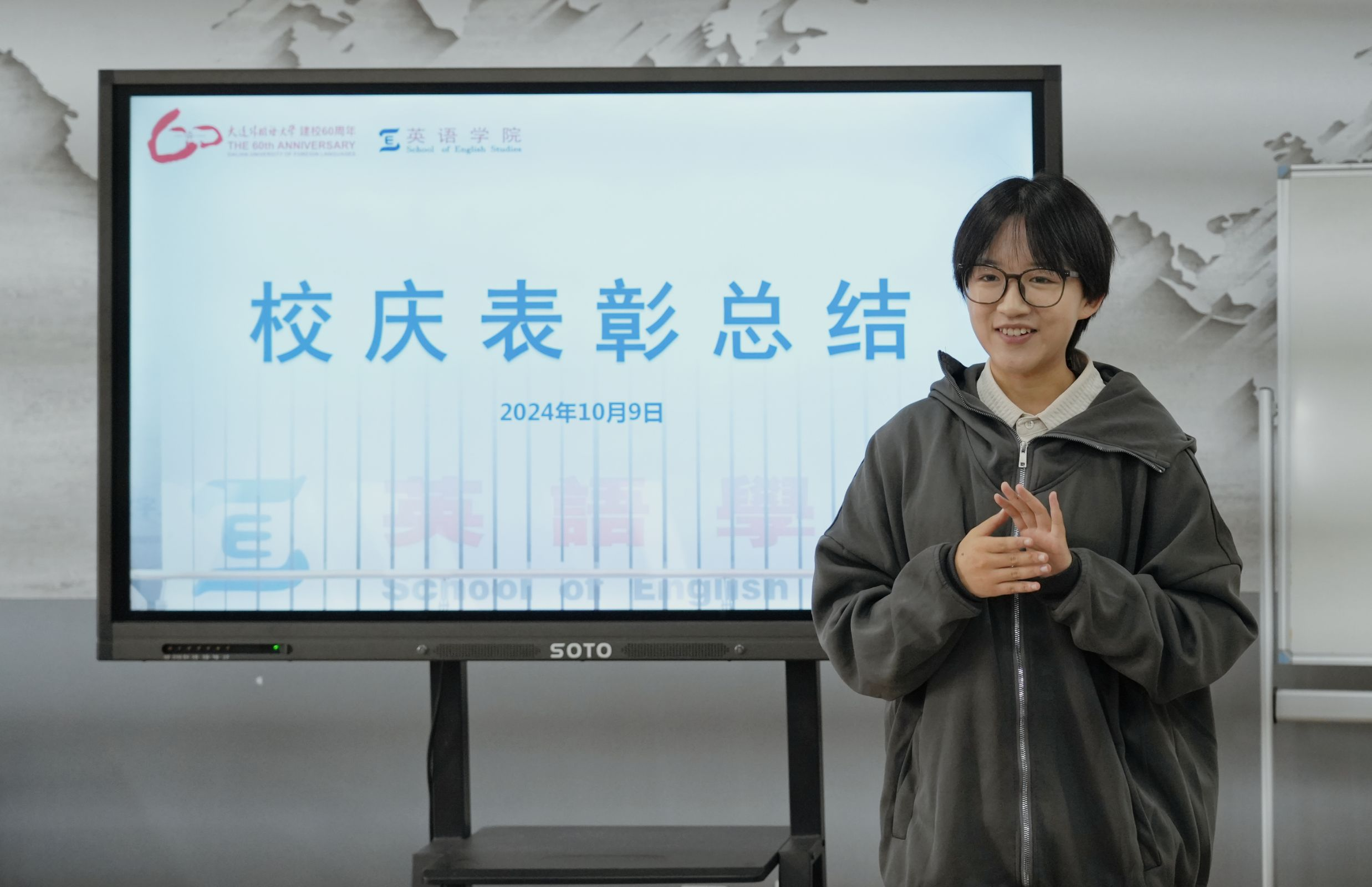 為進(jìn)一步加強(qiáng)學(xué)院建設(shè),總結(jié)英語(yǔ)學(xué)院師生在我校六十周年校慶的精彩表現(xiàn),并對(duì)學(xué)院各個(gè)部門工作進(jìn)行表彰,10月9日下午,英語(yǔ)學(xué)院在勵(lì)業(yè)樓愛爾蘭中心舉辦校慶工作總結(jié)會(huì)暨表彰大會(huì)。本次會(huì)議由英語(yǔ)學(xué)院黨委副書記兼紀(jì)委書記孫碩主持,英語(yǔ)學(xué)院團(tuán)委書記兼2023級(jí)輔導(dǎo)員曲鏡達(dá)、2021級(jí)輔導(dǎo)員達(dá)尼亞爾江·亞力坤江、2022級(jí)輔導(dǎo)員李延奇、2023級(jí)輔導(dǎo)員吳曼、2024級(jí)輔導(dǎo)員王藝凝出席此次會(huì)議。
