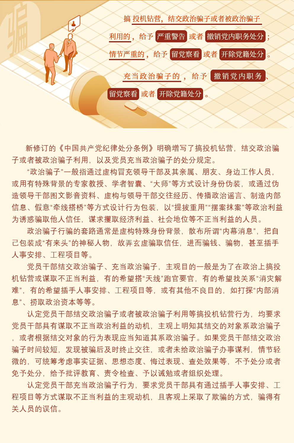 黨紀(jì)學(xué)習(xí)(二十五):對(duì)結(jié)交、充當(dāng)政治騙子的處分規(guī)定有哪些?