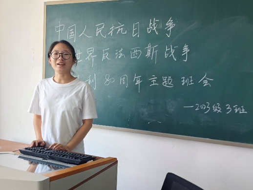 為紀念中國人民抗日戰(zhàn)爭暨世界反法西斯戰(zhàn)爭勝利80周年,傳承和弘揚以愛國主義為核心的偉大民族精神,激勵英語學院學子從歷史中汲取奮進力量,堅定理想信念,9月上旬,英語學院各班組織開展“紀念中國人民抗日戰(zhàn)爭暨世界反法西斯戰(zhàn)爭勝利80周年”愛國主義教育主題班會。
