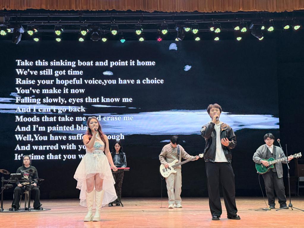 本次文藝嘉年華由流行舞蹈《Killin' It Girl》拉開帷幕,炫酷律動爆發(fā)出的極致張力點燃全場。接下來由The Seekers樂隊帶來表演《Falling Slowly+What Makes You Beautiful》,美妙的音樂使同學們沉醉其中。隨后,一場歌曲串燒《時光機》帶大家重溫金曲,活力四射的流行舞蹈《FANCY》引爆熱情,而別有韻味的戲曲歌唱《新霸王別姬》則帶來了獨特的藝術(shù)震撼。此后,優(yōu)雅的《古典舞蹈串燒》仿佛讓人穿越時空,英語配音《愛寵大機密》則以惟妙惟肖的表演收獲了滿堂歡笑與掌聲。至此,第一階段的“銘刻·青春長河”展演結(jié)束,激動人心的抽獎環(huán)節(jié)展開,由2025級輔導員達尼亞爾江·亞力坤江和團委書記兼2023級輔導員曲鏡達抽取幸運觀眾。