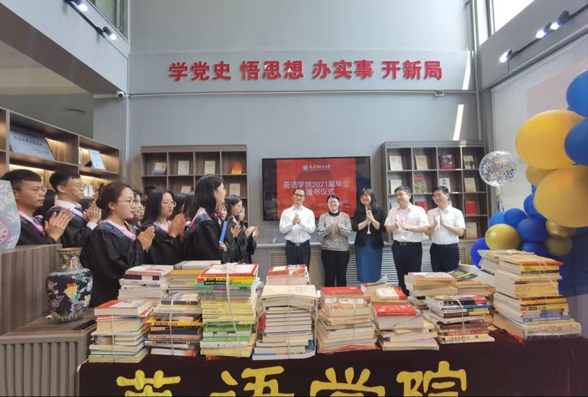 6月22日,英語(yǔ)學(xué)院于勵(lì)業(yè)樓成功舉辦2021屆畢業(yè)生贈(zèng)書儀式。英語(yǔ)學(xué)院院長(zhǎng)呂春媚、黨委副書記梁若冰、副院長(zhǎng)曲濤、劉曉暉、王成東、分團(tuán)委書記曲鏡達(dá)、2017級(jí)輔導(dǎo)員達(dá)尼亞爾江·亞力坤江和2018級(jí)輔導(dǎo)員李延奇參與本次儀式。