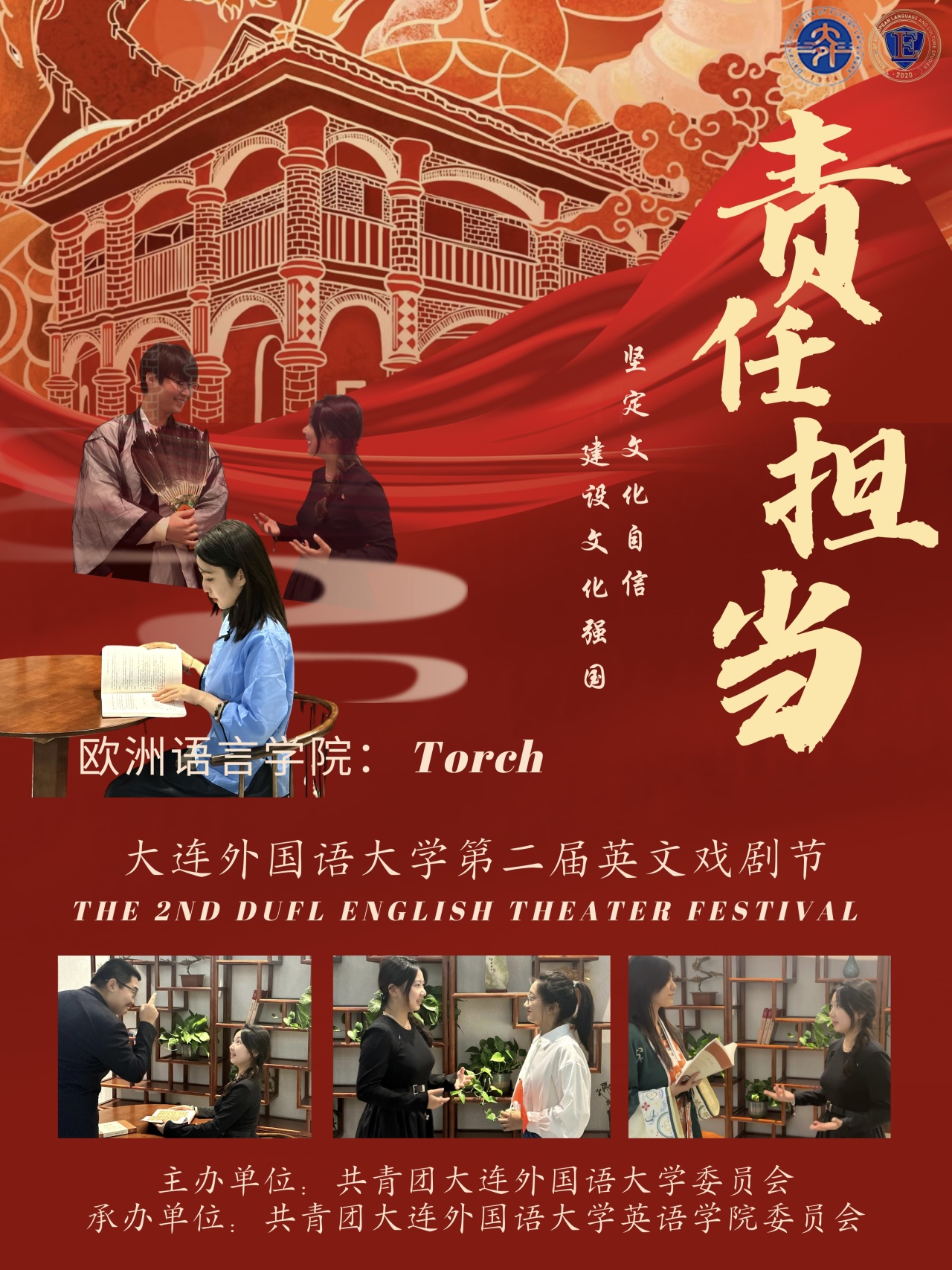 挺膺擔當勵青春,奮楫揚帆啟新程。由校團委主辦、英語學院團委承辦的大連外國語大學第二屆英文戲劇節(jié)復賽于9月27日下午順利舉行。本次復賽共分為“創(chuàng)新發(fā)展”、“責任擔當”、“復興道路”、“面向未來”四個賽道,各賽道評選出一支隊伍于本屆戲劇節(jié)閉幕式進行展演。