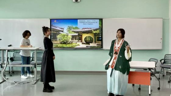 在“責任擔當”賽道,來自法語學院、歐洲語言學院、德語學院和韓國語學院的四支隊伍以“發(fā)展文化創(chuàng)新,自信傲立潮頭”為主題,帶領觀眾們走進歷史、穿越時空,體會中華文化的博大精深、源遠流長。