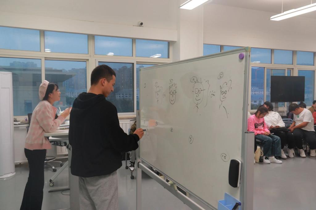 接力版你畫我猜更是讓現(xiàn)場(chǎng)歡笑不斷,每組派出??輪流到?板處畫畫,只有第??知道名稱,其余同學(xué)均靠猜來作畫。同學(xué)們或生動(dòng)或抽象的圖畫使得現(xiàn)場(chǎng)氣氛一度被點(diǎn)燃,掌聲連連。