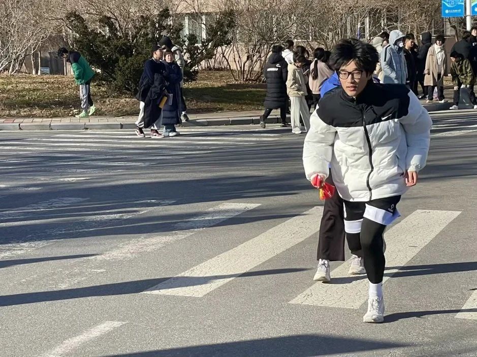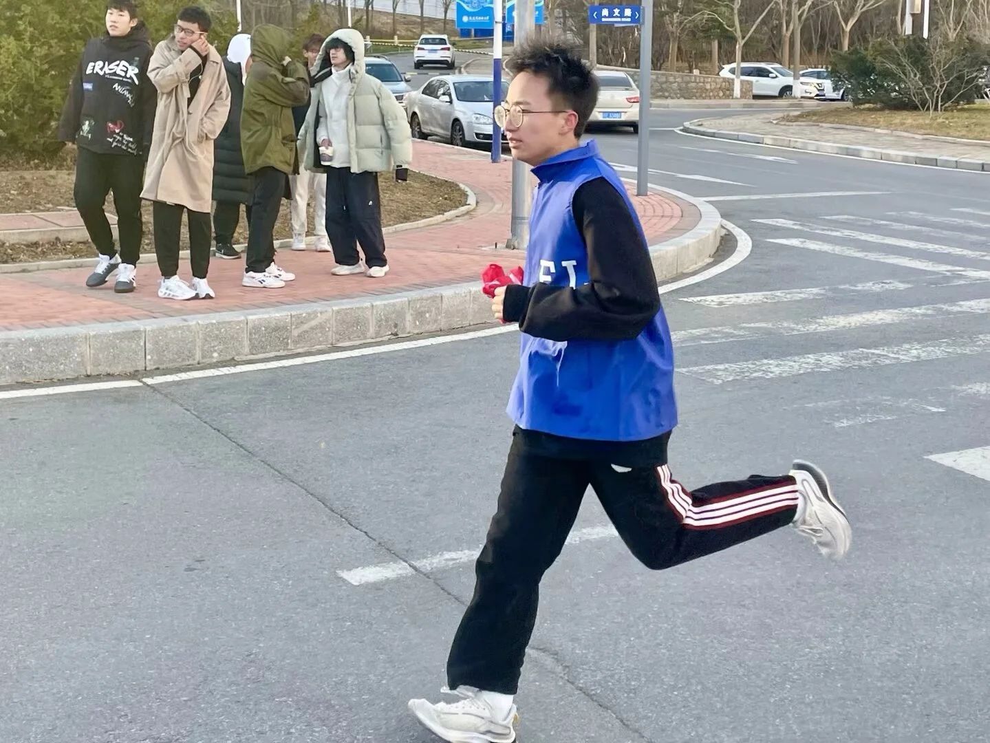 天氣寒冷,冬風(fēng)凜冽,可這并沒有阻擋同學(xué)們?nèi)珀柟獍忝髅牡臒崆椤T跍?zhǔn)備期間,大家摩拳擦掌,互相打氣,以最好的狀態(tài)迎接比賽。隨后,參賽選手們走入賽道,握緊彩帶。隨著裁判一聲槍響,青春的身影如箭矢般飛出,步履如飛,不甘落后。賽場上,英院學(xué)子全力以赴,奮勇爭先,互相配合,穩(wěn)穩(wěn)接力。跑道邊,同學(xué)們?yōu)閰①愡x手吶喊助威,高聲喝彩。最終,長跑比賽在同學(xué)們的歡呼聲中結(jié)束。