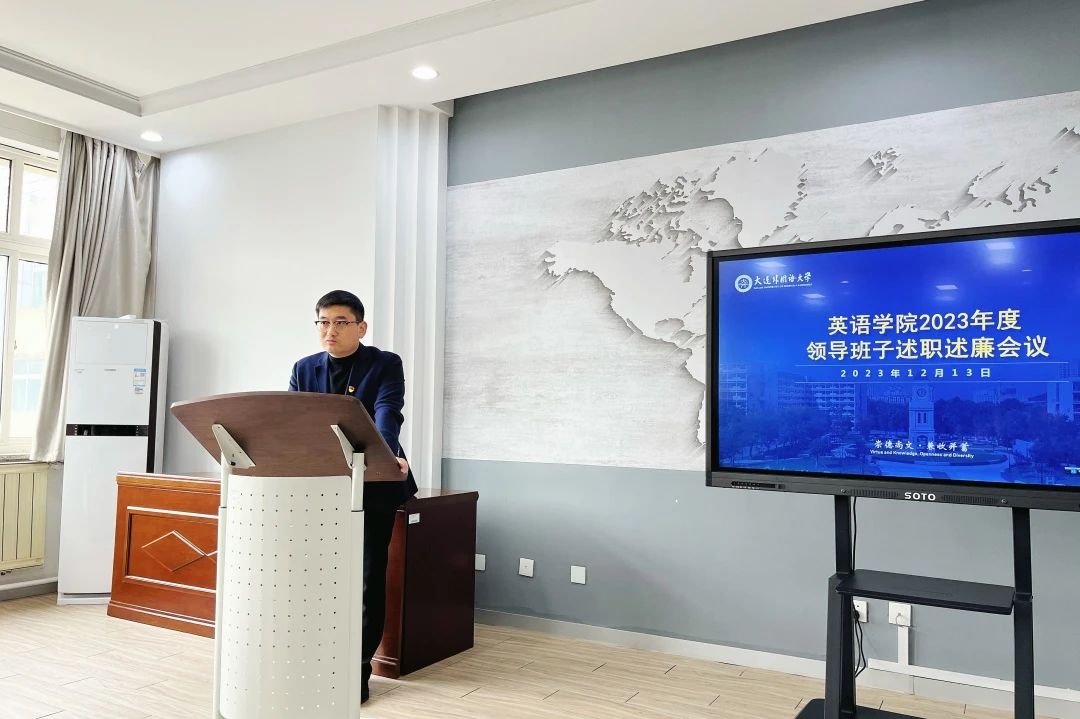 英語(yǔ)學(xué)院院長(zhǎng)呂春媚代表學(xué)院領(lǐng)導(dǎo)班子進(jìn)行了2023年度領(lǐng)導(dǎo)班子述職,從思想政治建設(shè)、組織管理能力、工作實(shí)績(jī)和反腐倡廉等方面對(duì)本年度領(lǐng)導(dǎo)班子工作情況進(jìn)行總結(jié)。同時(shí),呂院長(zhǎng)代表學(xué)院班子衷心感謝學(xué)院全體教師一如既往的支持、拼搏和奉獻(xiàn),并鼓勵(lì)大家再接再厲、接續(xù)奮斗,全面實(shí)現(xiàn)“十四五”規(guī)劃既定目標(biāo)。