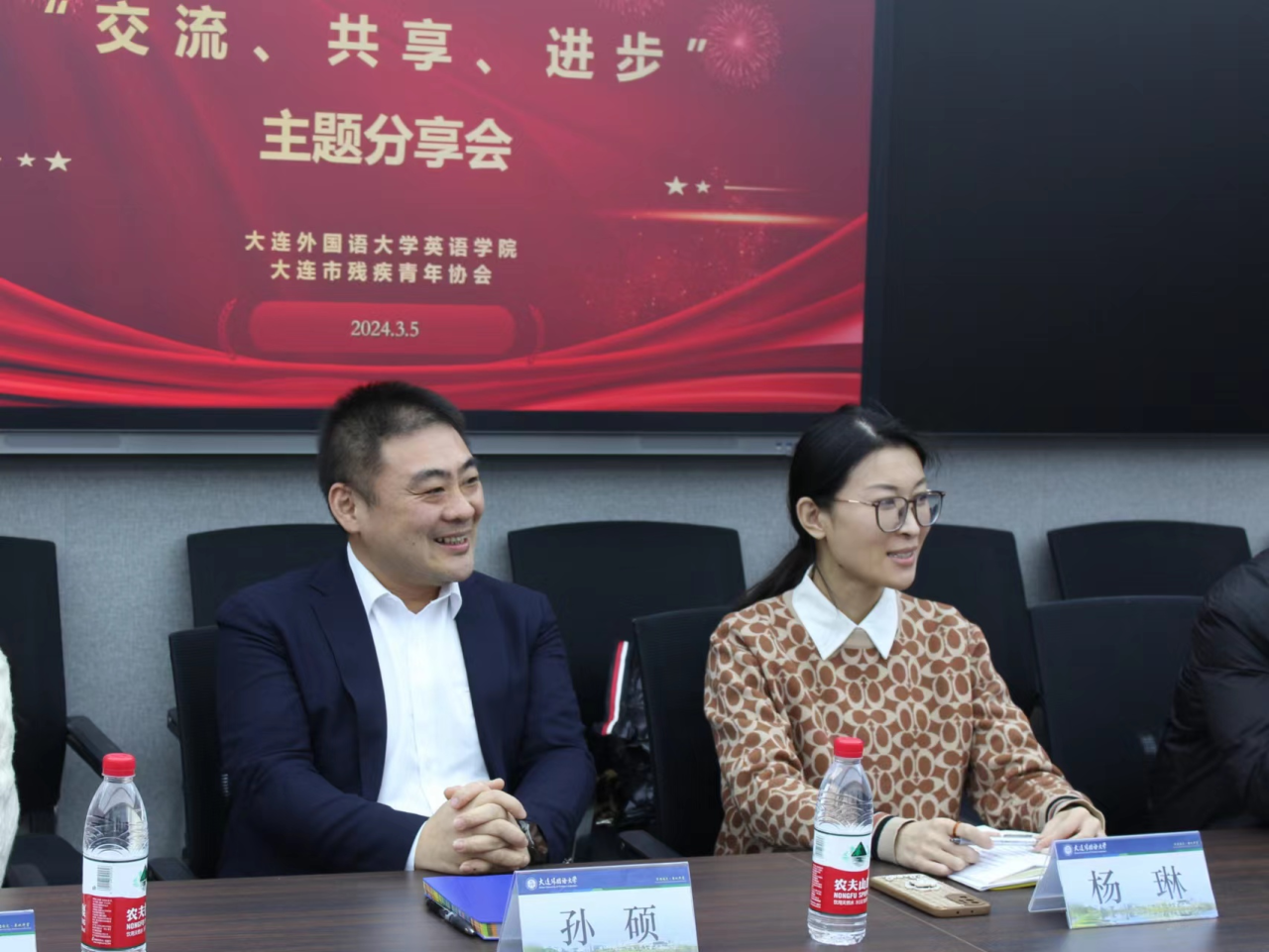 陽春三月,風(fēng)光無限,雷鋒精神,傳承不息。2024年正值“學(xué)雷鋒紀(jì)念日”六十一周年,值此之際,為學(xué)習(xí)雷鋒精神、賡續(xù)紅色血脈,3月5日,英語學(xué)院與大連市殘疾青年協(xié)會于勵業(yè)樓109會議室舉辦了“交流、共享、進步”主題分享會。大連市殘疾青年協(xié)會主席戰(zhàn)海峰、肢殘人協(xié)會主席吳喆、大連市殘疾青年協(xié)會副主席張海、李福霞、秘書長梁坤、副主席助理金夢、以及五名殘疾青年代表開展座談,我校團委副書記楊琳、英語學(xué)院黨委副書記兼紀(jì)委書記孫碩、團委書記曲鏡達、2020級輔導(dǎo)員王藝凝、研究生輔導(dǎo)員黃新智,以及殘疾青年志愿服務(wù)隊學(xué)生代表出席本次會議。