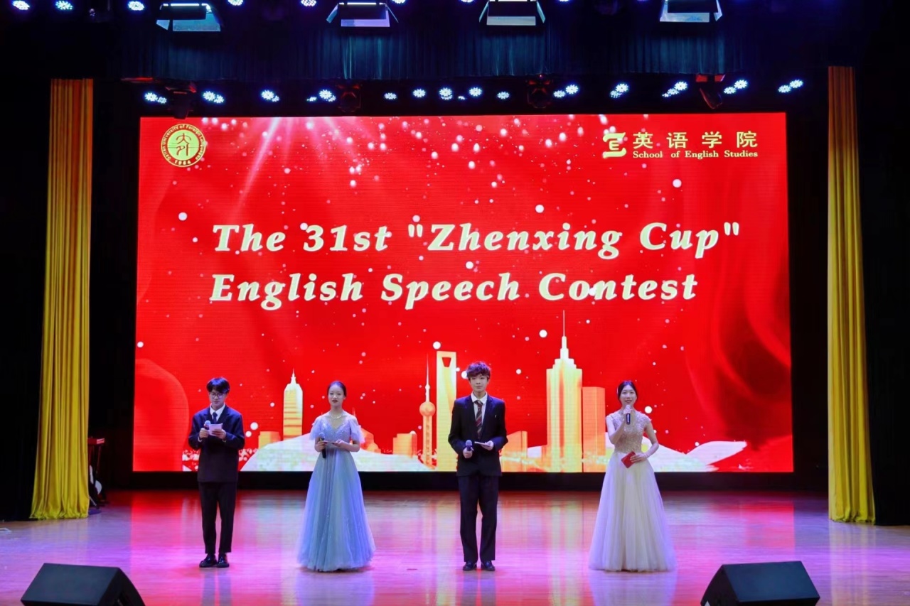 為提升英院學(xué)子的英語表達(dá)能力和演講技巧,激勵(lì)同學(xué)們用英語抒發(fā)愛國情懷、講好中國故事, 6月5日上午,英語學(xué)院第31屆“振興杯”英語演講比賽決賽在大學(xué)生活動(dòng)中心順利舉行。本次“振興杯”演講比賽決賽誠摯邀請(qǐng)了校團(tuán)委李虹瑾書記、教務(wù)處羅米良副處長、研究生處劉翔副處長、英語學(xué)院黨委書記梁若冰、院長呂春媚、黨委副書記兼紀(jì)委書記孫碩、副院長曲濤、副院長劉曉暉、副院長王成東、團(tuán)委書記曲鏡達(dá)、英語學(xué)院2010屆畢業(yè)生、現(xiàn)任萊塔思國際教育董事長刁彤女士出席本次比賽。黃滔、曲長亮、劉雪蓮、黃潔芳、劉春偉、曲義、羅俏鵑七位教師受邀擔(dān)任評(píng)委,韓秀老師擔(dān)任提問嘉賓。2021級(jí)李譽(yù)、2022級(jí)汪思齊、2023級(jí)張曦曦、2023級(jí)任智博四位同學(xué)擔(dān)任本場(chǎng)比賽主持人,英語學(xué)院部分師生現(xiàn)場(chǎng)觀賽。
