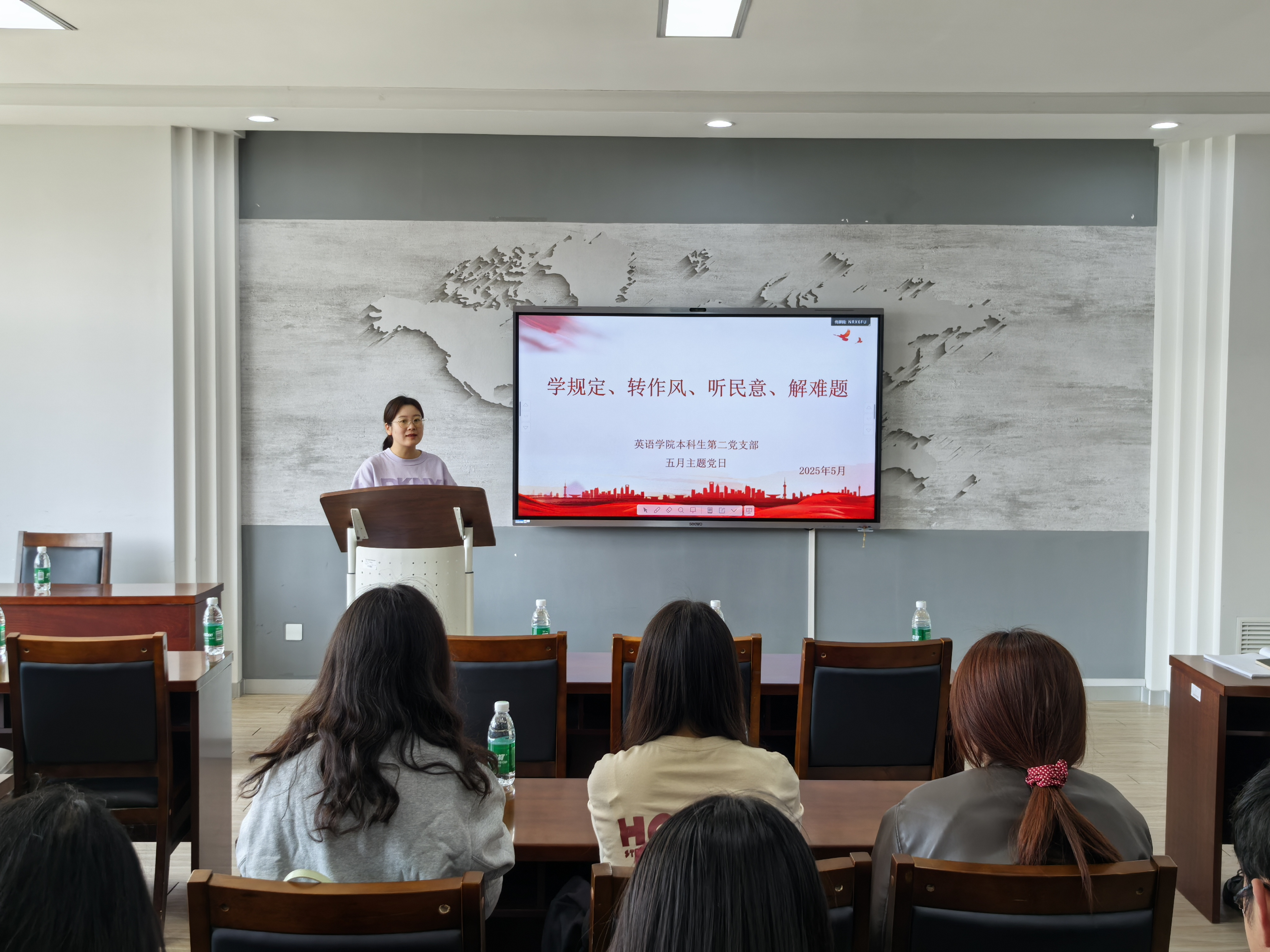 為了深入貫徹落實(shí)學(xué)校黨委工作部署,5月7日,英語學(xué)院各支部組織黨員開展了以“學(xué)規(guī)定、轉(zhuǎn)作風(fēng)、聽民意、解難題”為主題的黨日活動(dòng)。