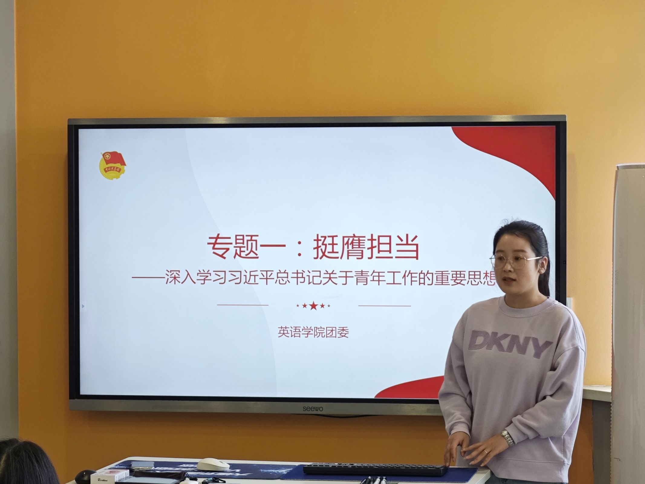 開(kāi)班儀式后,英語(yǔ)學(xué)院本科生第一黨支部書記王藝凝帶來(lái)“挺膺擔(dān)當(dāng)——深入學(xué)習(xí)習(xí)近平總書記關(guān)于青年工作的重要思想”團(tuán)課第一講課程。王藝凝老師以全面系統(tǒng)的講解,帶領(lǐng)同學(xué)們深入認(rèn)識(shí)共青團(tuán)的組織性質(zhì)、核心職能,并通過(guò)梳理共青團(tuán)在不同歷史時(shí)期的發(fā)展脈絡(luò),生動(dòng)展現(xiàn)其在中國(guó)革命、建設(shè)和改革進(jìn)程中的重要作用。此外,王藝凝老師還通過(guò)展播《共青春》宣傳片等形式,引導(dǎo)同學(xué)們感悟共青團(tuán)的紅色基因與精神傳承,激勵(lì)大家勇?lián)鷷r(shí)代使命,將個(gè)人成長(zhǎng)融入國(guó)家發(fā)展大局。