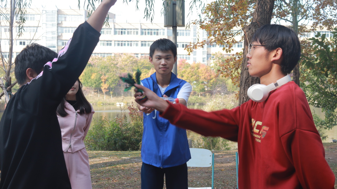 活動(dòng)正式開(kāi)始前,同學(xué)們被隨機(jī)分為15組,各組同學(xué)想好隊(duì)名后由組長(zhǎng)抽取號(hào)碼順序,隨后前往校園各個(gè)集章點(diǎn)進(jìn)行游戲打卡。本次素拓共有“月球行走”“秋之詩(shī)韻”“月兔拔蘿”“定格拍照”“我是雕塑”“花開(kāi)花落”等十五個(gè)游戲。