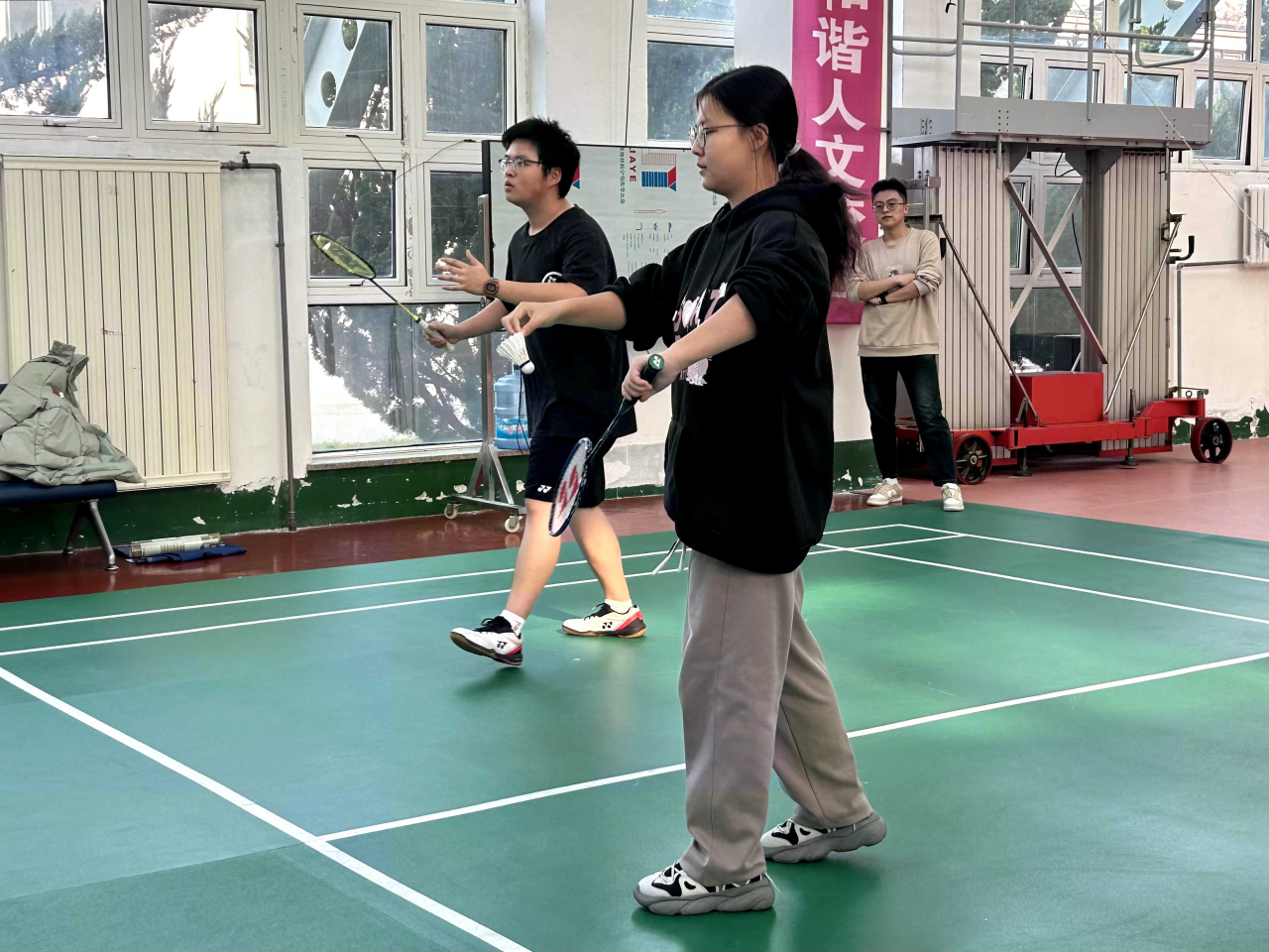 為了增強集體凝聚力,提升同學(xué)們的身體素質(zhì),展示學(xué)生們陽光運動的風(fēng)采,弘揚英語學(xué)院團結(jié)拼搏、自強不息的風(fēng)尚,經(jīng)過前期精心細致的策劃,英語學(xué)院團委學(xué)生組織于11月23日至12月5日在風(fēng)雨操場開展“五羽輪比”羽毛球賽。