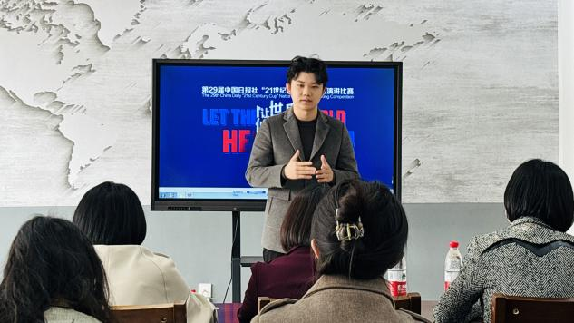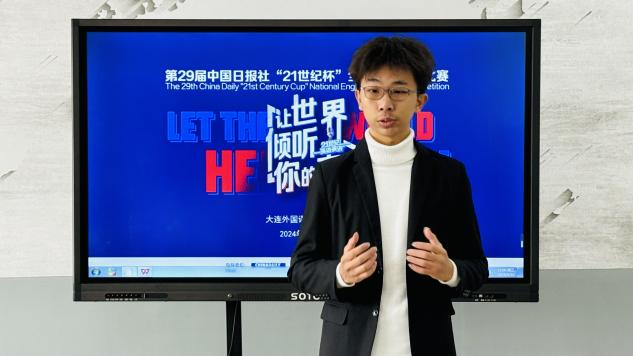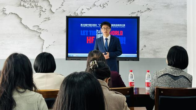 4月10下午,第29屆中國(guó)日?qǐng)?bào)社“21世紀(jì)杯”全國(guó)英語(yǔ)演講比賽校園選拔賽于勵(lì)業(yè)樓愛(ài)爾蘭中心成功舉辦。經(jīng)過(guò)院內(nèi)初賽的角逐,各學(xué)院選派代表參加校園選拔賽。本次校園選拔賽由英語(yǔ)學(xué)院承辦,學(xué)院演講俱樂(lè)部石文瑞老師擔(dān)任主持人,黃滔、李群、韓丹、劉曉靜、楊迪五位來(lái)自各個(gè)學(xué)院的老師應(yīng)邀擔(dān)任評(píng)委。比賽以“The revival of traditional culture”為主題,參賽選手妙語(yǔ)連珠,以獨(dú)特的視角表達(dá)自己的觀點(diǎn),展示了大外學(xué)子的獨(dú)特風(fēng)采。
